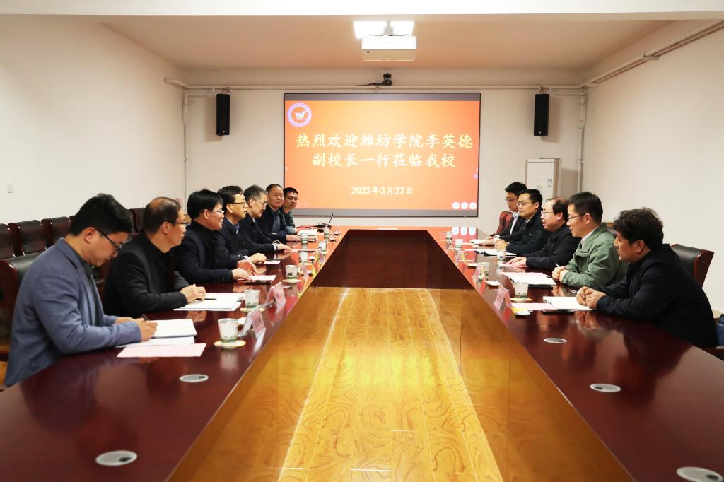 3月22日下午,潍坊学院副校长李英德一行5人到我校就科学研究、学科建设、成果转化等工作进行考察交流。我校校长、党委副书记魏华中,党委书记赵光强,党委委员、副校长张友祥及相关部门负责人参加座谈。