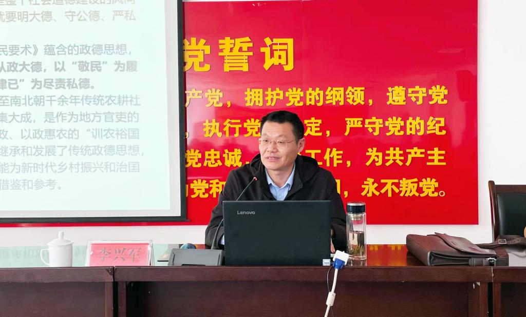 李兴军教授介绍了贾思勰与《齐民要术》的相关情况,对中国传统政德观的形成与核心旨归作了学术梳理,并从思想维、实践维两个维度对《齐民要术》中的政德思想作了系统讲解,认为以安民米袋、富民钱袋、智民脑袋为内容的“齐民”思想具象化了德政实践的内涵,以勤政为民、学习于民、服务于民、忧患于民为内容的“敬民”思想增强了政德实践可操作性,以勤谨观、朴素节约观、家风家教观、生活圈与交友观为内容的“律已”思想提供了人德涵养实践保障,是《齐民要术》政德思想的精华所在。