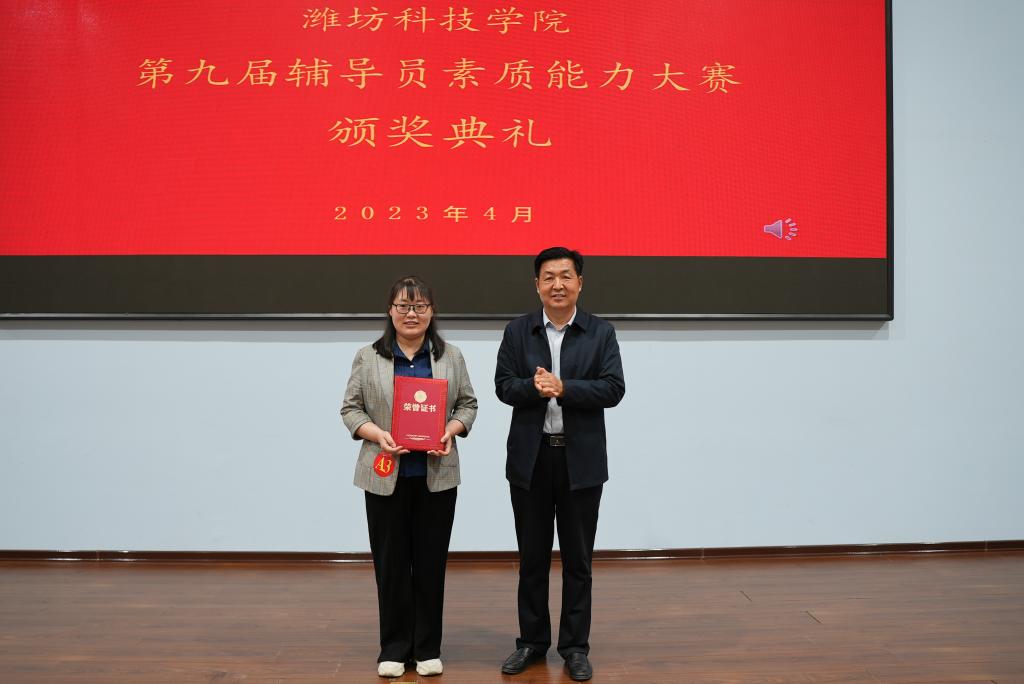 为深入学习贯彻习近平新时代中国特色社会主义思想和党的二十大精神,推动学生思想政治工作高质量发展,4月18日-19日,我校举办“踔厉奋发跟党走,勇毅前行向未来”第九届辅导员素质能力大赛。我校党委委员、副校长李广伟出席并为获奖选手颁奖。