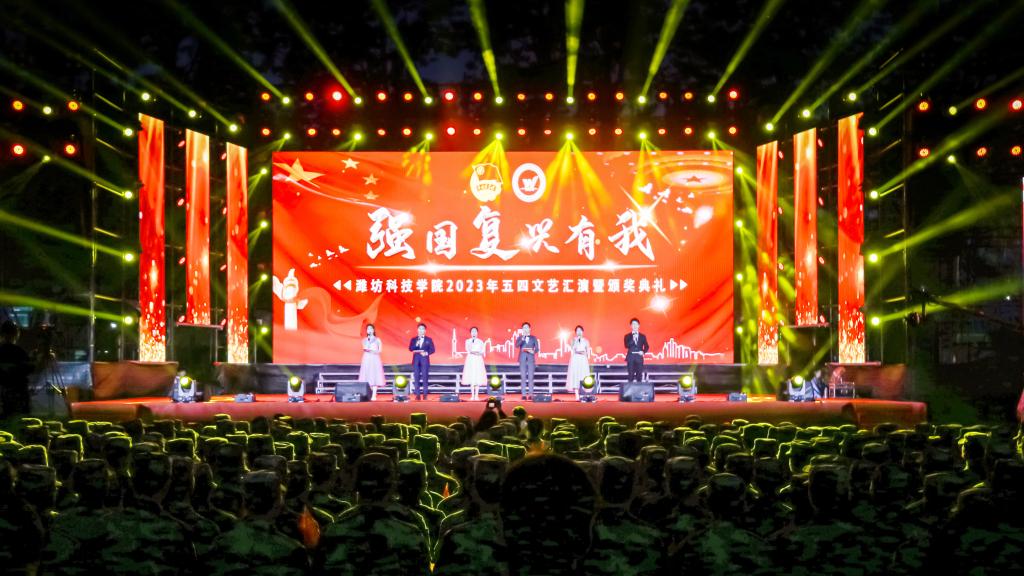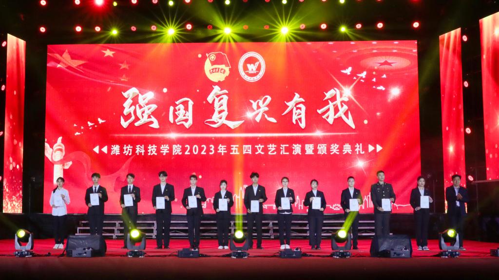 青春逢盛世,奋斗正当时。4月27日晚,潍坊科技学院“强国复兴有我”2023年五四文艺汇演暨颁奖典礼在东操场举行。学校校长、党委副书记魏华中,校级领导班子成员,获奖代表和8000余名师生观看演出,共同感受新时代新征程上的青春风采。
