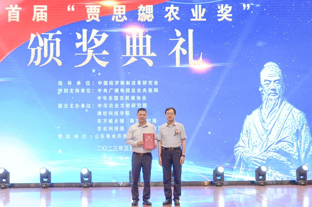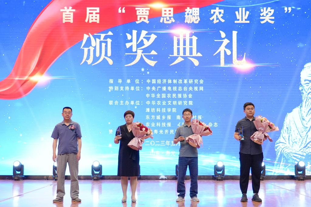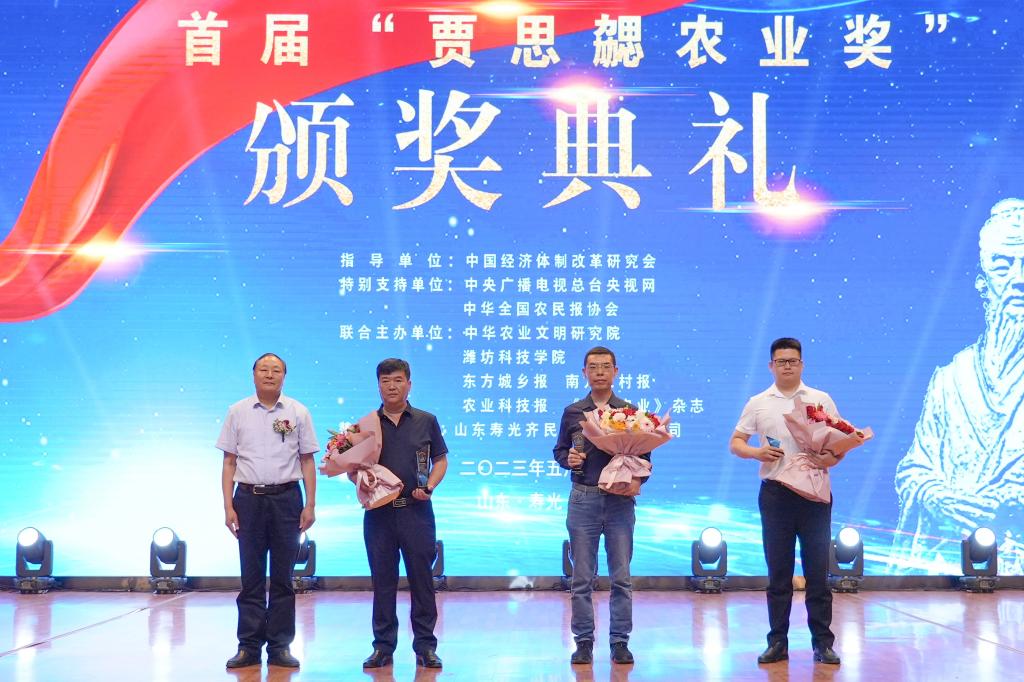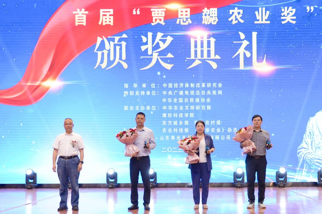 5月20日晚,首届“贾思勰农业奖”颁奖典礼在潍坊科技学院国际会议中心举行。国家统计局农村经济司原司长、一级巡视员黄秉信,中国人民大学农业与农村发展学院原党委书记、中国合作社研究院院长孔祥智,山东省农业农村厅原副厅长、一级巡视员褚瑞云,中华全国农民报协会秘书长余向东,中国农业历史学会副秘书长吴昊,寿光市人民政府副市长鞠洪刚,潍坊科技学院校长、党委副书记魏华中等参加颁奖典礼。