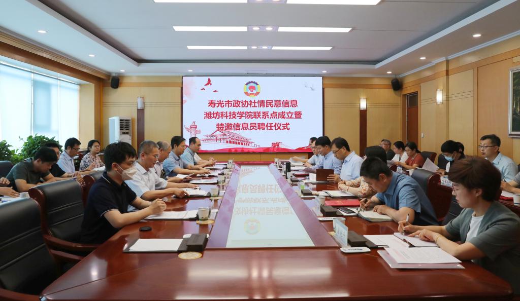 为进一步拓宽社情民意信息来源渠道,5月26日,寿光市政协社情民意信息潍坊科技学院联系点成立暨特邀信息员聘任仪式在潍坊科技学院举行。市政协党组成员、副主席卢法贵,党组成员、秘书长国明波,潍坊科技学院校长、党委副书记魏华中出席仪式。