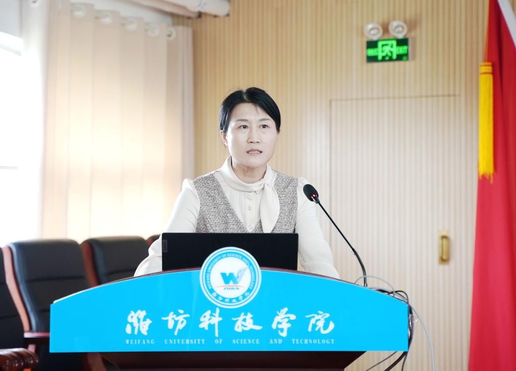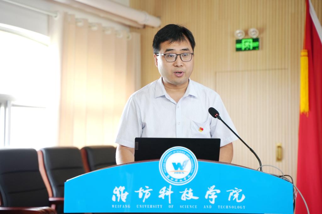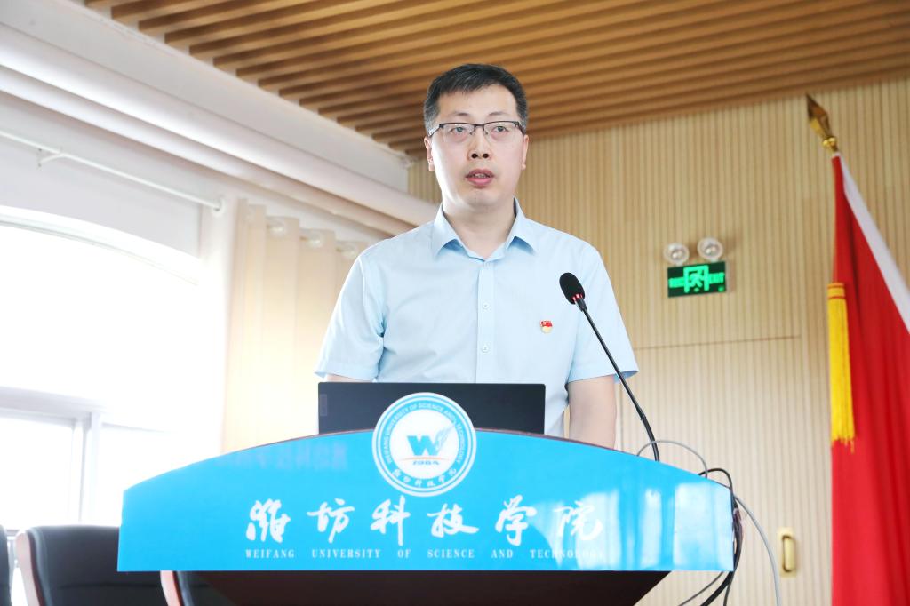 山东省教育厅(省委教育工委)学校组织处处长孙启高作了讲话。孙处长充分肯定了近年来学校的发展成效。他指出,潍坊科技学院坚持应用型特色名校的办学定位,以高质量的党建引领学校各项工作高质量发展,在人才培养、科学研究、文化传承、社会服务等各个方面都走出了一条特色发展的道路,取得了显著成绩。基层党组织打造的“党团共建 阳光护理”“党员博士企业行”“匠心智行 党建赋能”等一些列党建品牌为我省高校党建工作品牌化建设提供了很好的借鉴和参考。