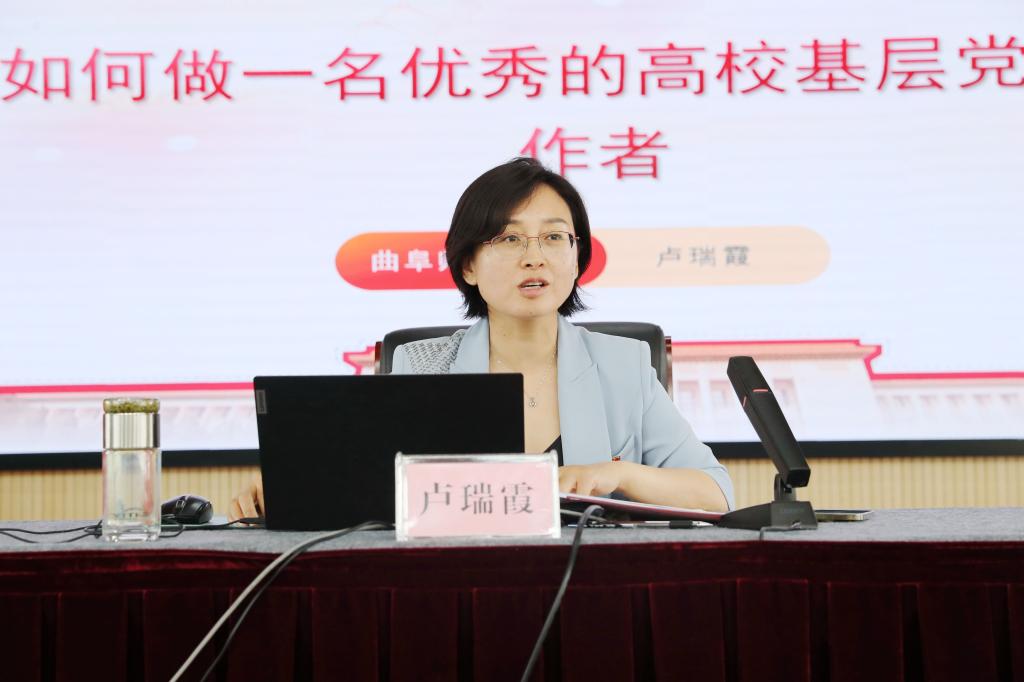 曲阜师范大学政治与公共管理学院党委书记卢瑞霞做了题为《如何做一名优秀的高校基层党务工作者》的培训报告。