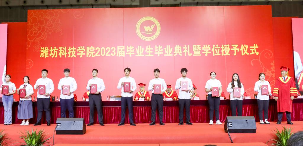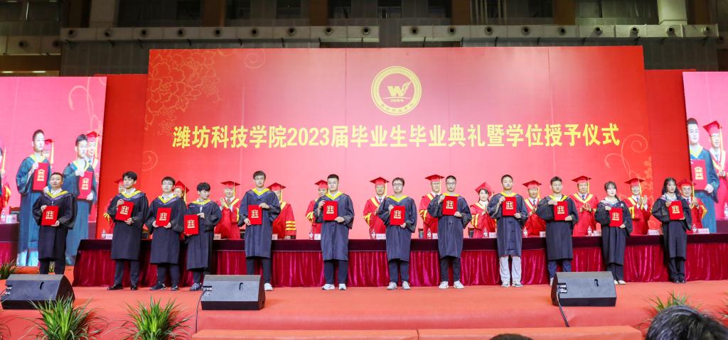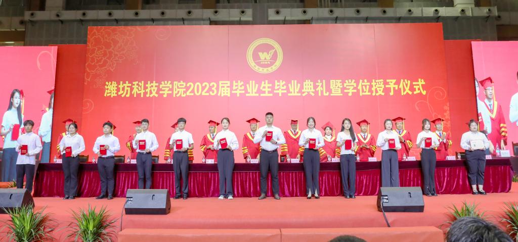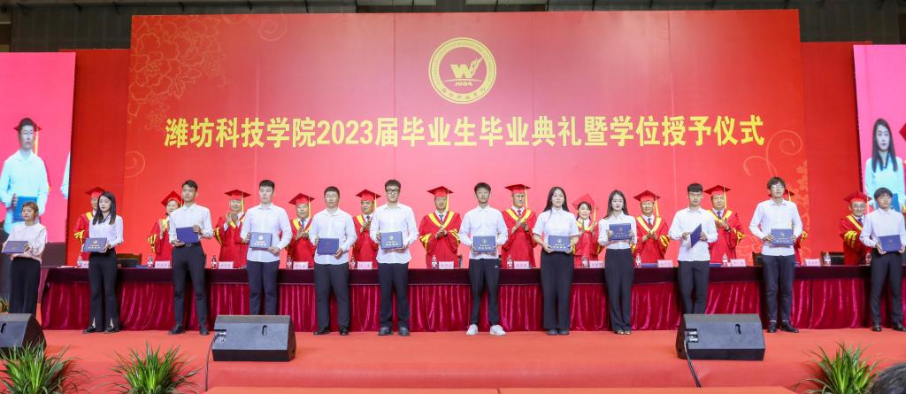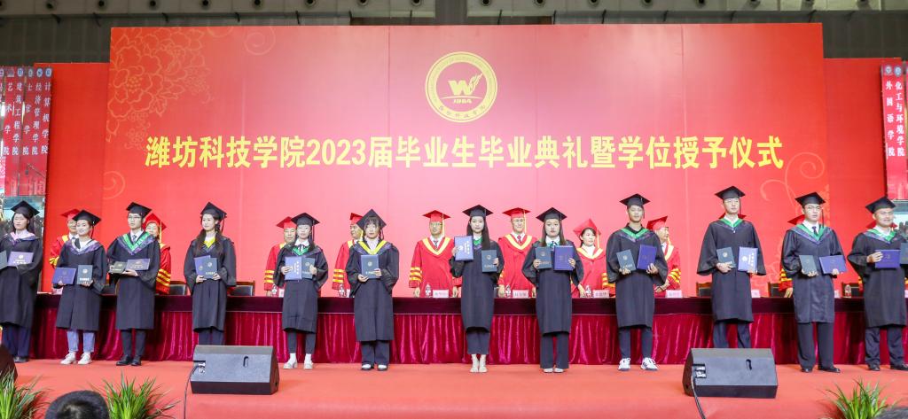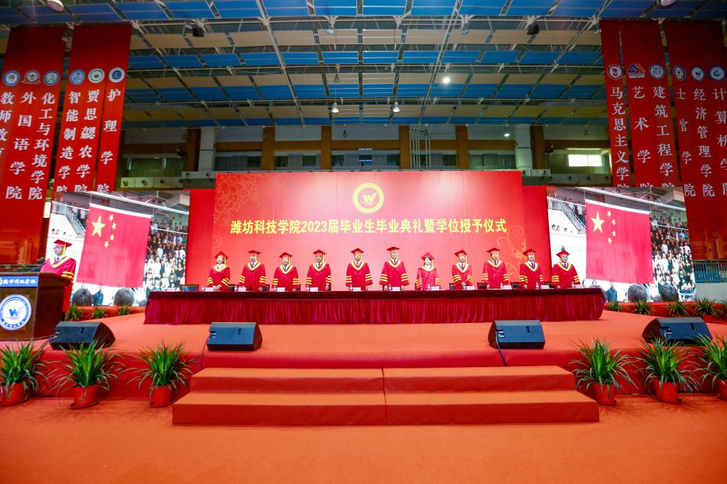 绿杨芳草长亭路,转眼又到送别时。6月20日上午,潍坊科技学院2023届毕业生毕业典礼暨学位授予仪式在学校体育馆举行。学校校长、党委副书记魏华中,全体校级领导班子成员,教务处、学工处、团委、各二级学院干部及教师代表,2023届10599名毕业生参加典礼。