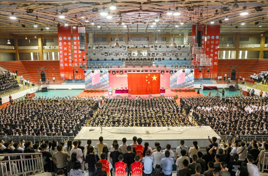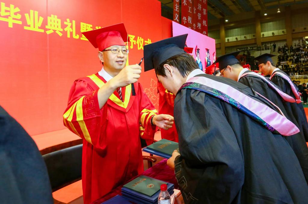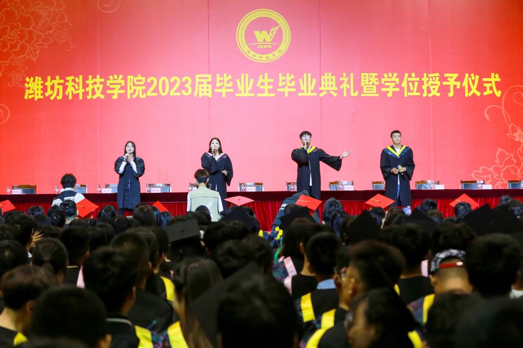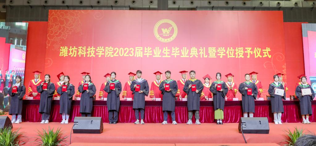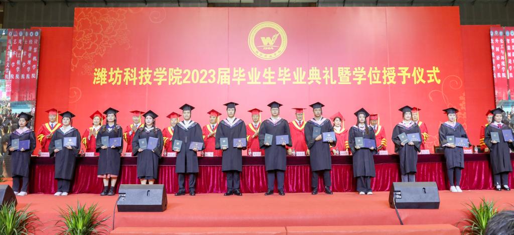 绿杨芳草长亭路,转眼又到送别时。6月20日上午,潍坊科技学院2023届毕业生毕业典礼暨学位授予仪式在学校体育馆举行。学校校长、党委副书记魏华中,全体校级领导班子成员,教务处、学工处、团委、各二级学院干部及教师代表,2023届10599名毕业生参加典礼。