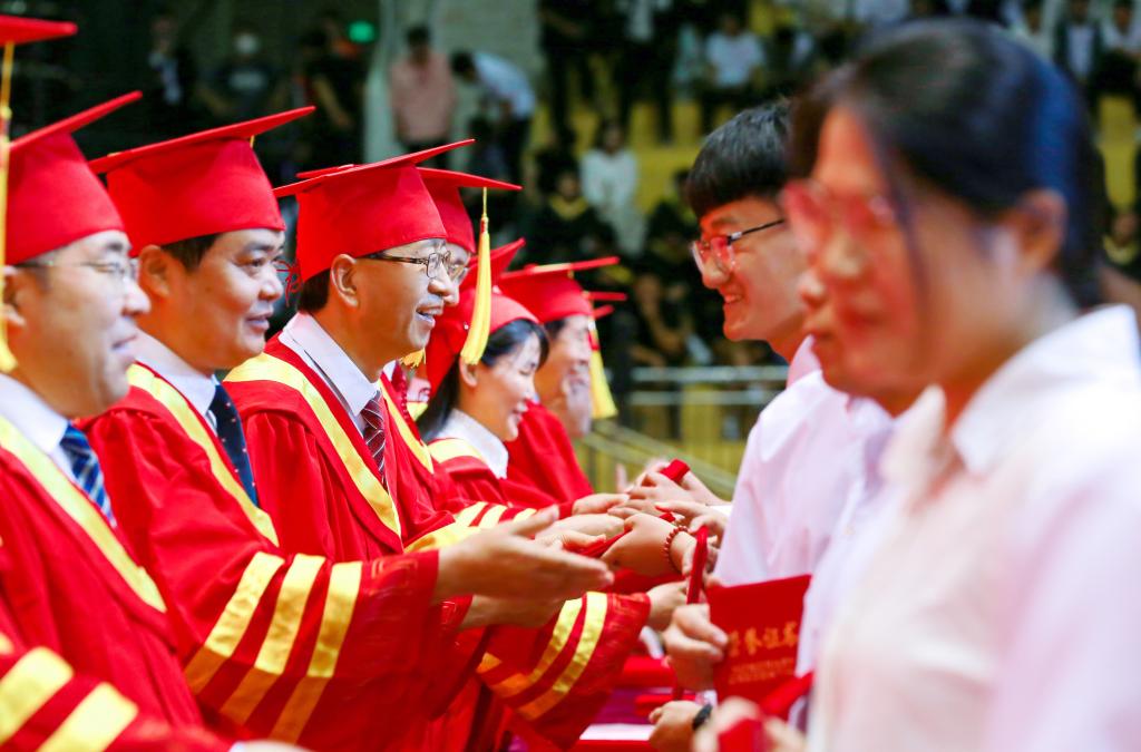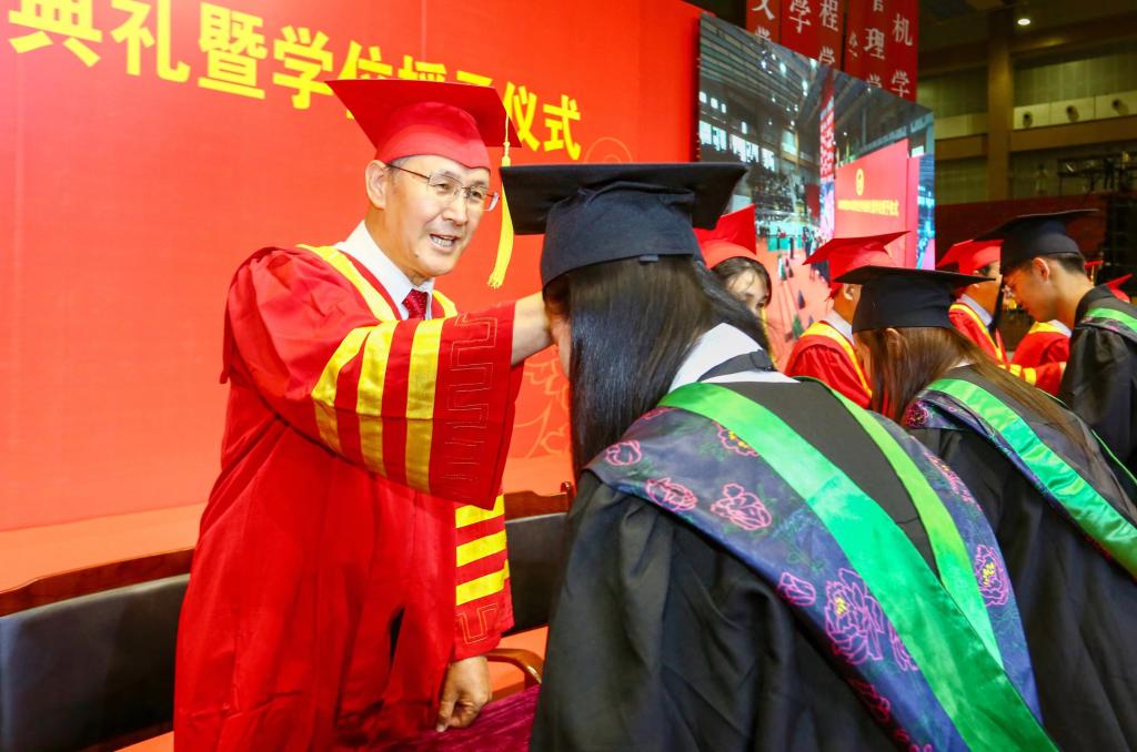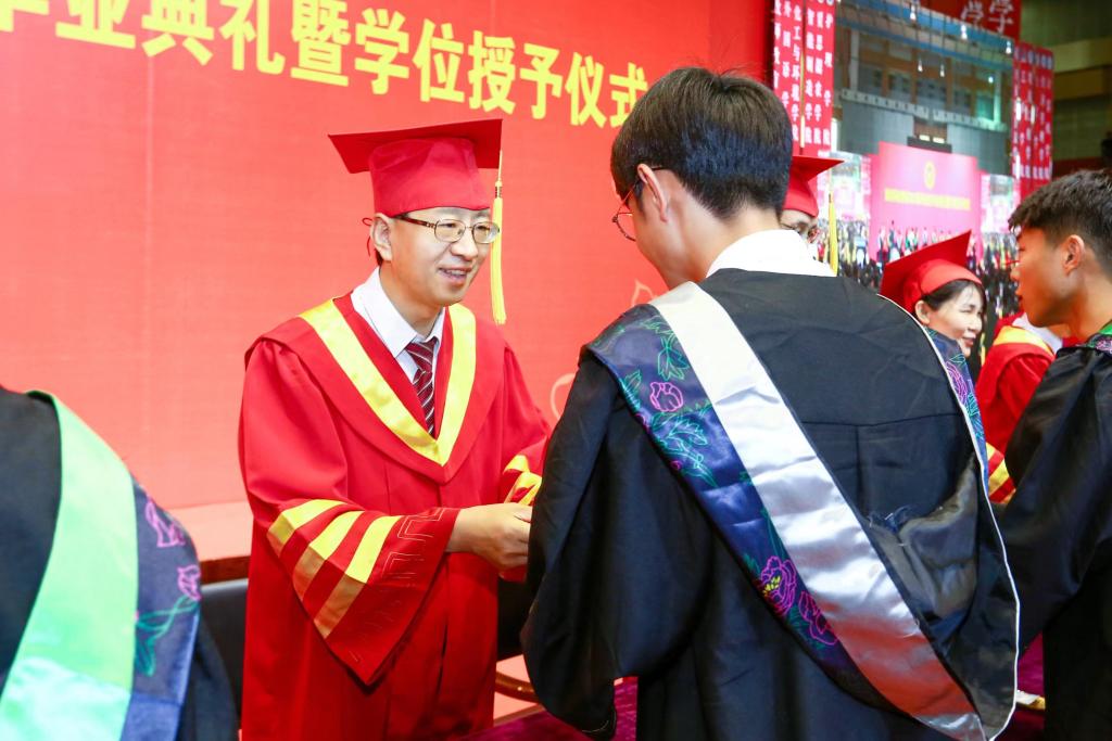 家长代表、教师教育学院刘星宇家长表达了对学校领导和老师们的深深谢意,愿同学们不负学校培养,带着母校赋予的知识学养和精神力量,带着老师和父母的殷切嘱托,踏上新的征程,朝着新的目标,继续努力、勇敢拼搏,不愧于这个时代。