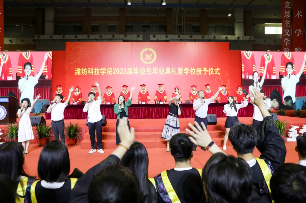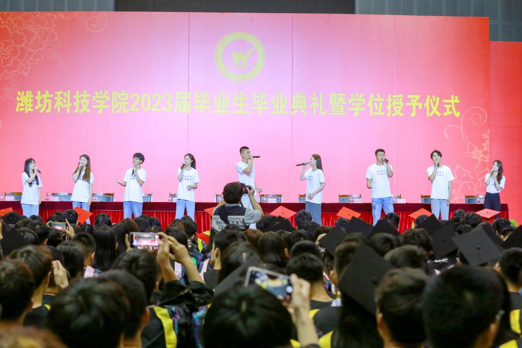 典礼开始前,学校为全体毕业生精心拍摄的毕业MV《潍科版成都》,及现场演唱的歌曲《潍科-光阴的故事》《凤凰花开的路口》《入海》赢得了现场同学的阵阵掌声和热烈互动。