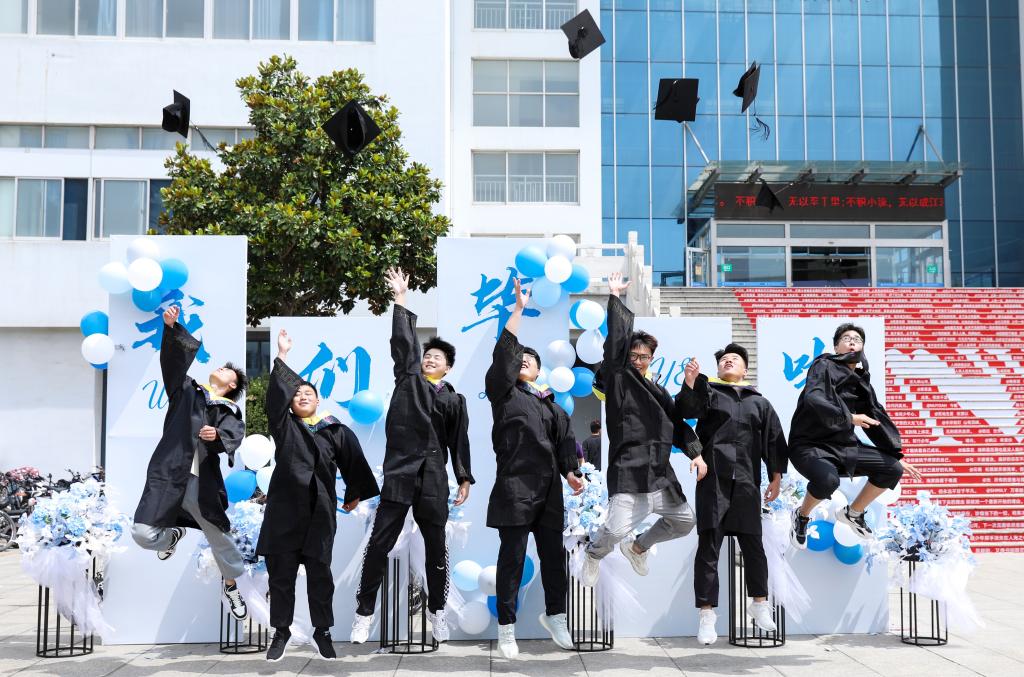 典礼结束后,全体师生、主席台领导齐唱歌曲《一路顺风》,目送毕业生离场。校领导与毕业生合影留念。