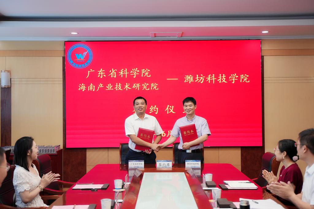 6月25日上午,潍坊科技学院与广东省科学院海南产业技术研究院合作签约仪式在办公楼第一会议室举行。广东省科学院海南产业技术研究院院长常海龙、三亚市崖州区农业农村局副局长张逸飞、粤港澳大湾区战略研究院综合办公室副主任赵雯敏,我校校长、党委副书记魏华中,党委委员、副校长张友祥,校务委员、贾思勰农学院院长徐友信,贾思勰农学院书记刘杰、贾思勰农学院副院长潘好芹参加会议。张友祥副校长主持签约仪式。