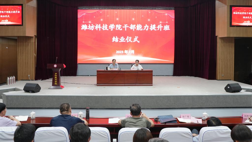 7月19日上午,潍坊科技学院干部能力提升培训班结业仪式在临沂大学乡村振兴学院举行。我校校长、党委副书记魏华中讲话。党委委员、副校长杨专志主持结业仪式。