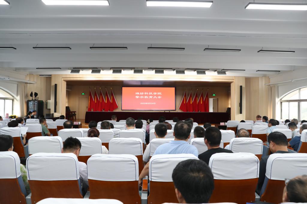 8月24日下午,潍坊科技学院在办公楼六楼报告厅组织召开警示教育大会。校级领导班子全体成员、中层副职及以上干部参加会议,全体与会人员集体观看了由潍坊纪委监委宣传部和潍坊市广播电视台联合摄制的警示教育片《贪腐的漩涡》。