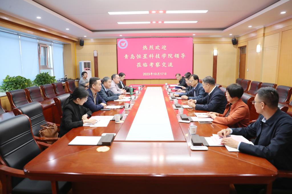 10月18日下午,青岛恒星科技学院党委书记刘龙海一行五人来校考察交流,我校校长、党委副书记魏华中,党委书记赵光强,党委委员、副校长杨专志,以及部分部门负责人参加了座谈。