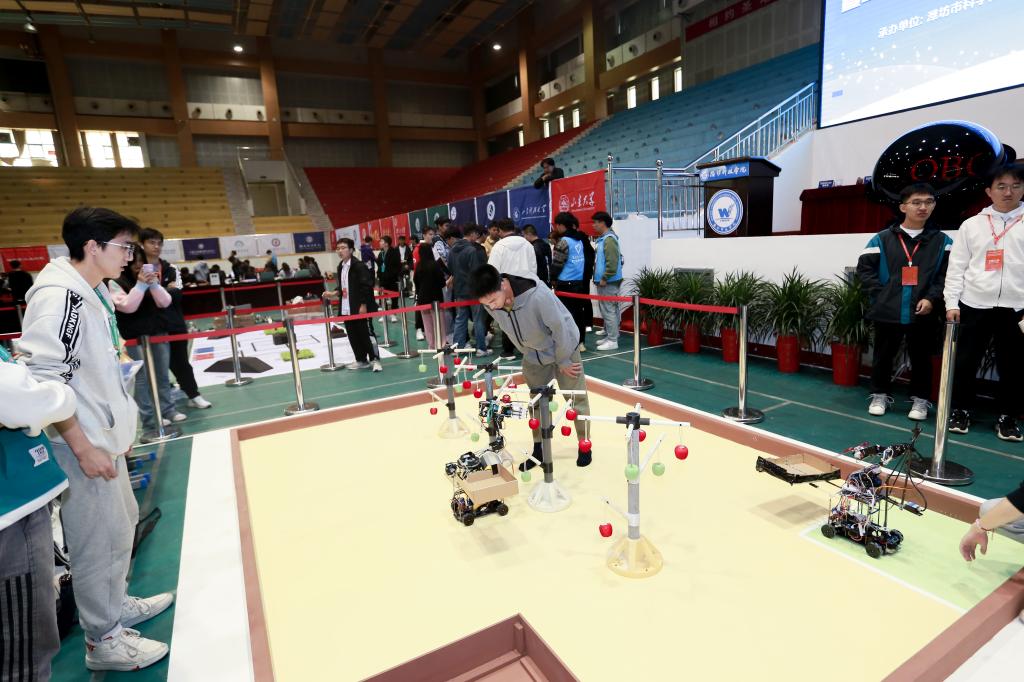 10月22日上午,由山东省科学技术协会、山东省教育厅、共青团山东省委、山东省发展和改革委员会、山东省工业和信息化厅、山东省人力资源和社会保障厅六部门主办,潍坊市科学技术协会、潍坊科技学院承办的第七届山东省大学生“数字+”创新创业大赛暨2023 ROBOCON机器人大赛(山东省赛)在潍坊科技学院体育馆举行。山东省科协学会服务中心主任刘利印,工业和信息化部人才交流中心国信人才负责人郑娟,潍坊市科协党组成员、副主席尹以成,全国大学生机器人大赛专家委员会副主任委员、北京科技大学教授郗安民,山东大学教授周风余,山东建筑大学教授于复生,西安交通大学副教授、ROBOCON大赛竞赛委员会委员李党超,河北工程大学副教授、ROBOCON大赛竞赛委员会委员何春燕,西南科技大学副教授刘自红,潍坊科技学院校长、党委副书记魏华中,潍坊科技学院副校长刘相法等参加开幕式。
