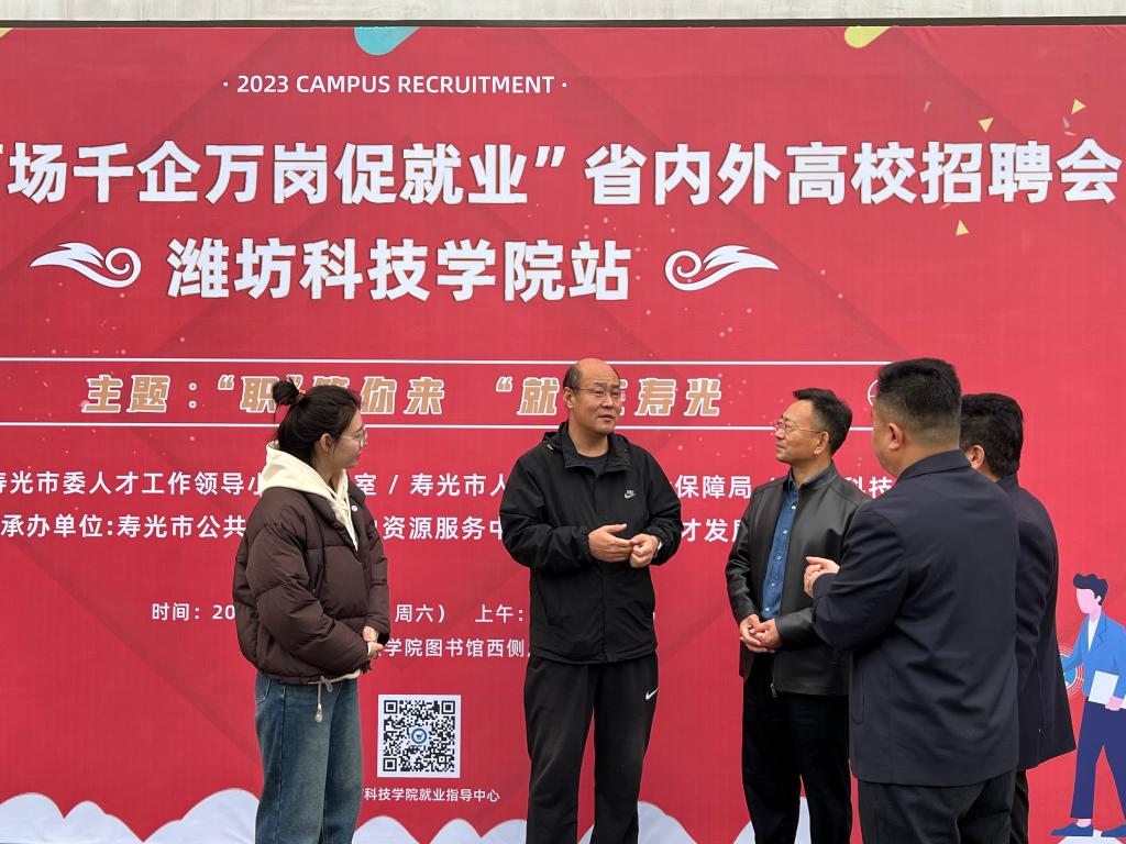 为深入贯彻落实党中央、国务院关于高校毕业生就业工作的重要指示精神和“稳就业、保就业”决策部署,积极做好我校2024届毕业生就业工作,搭建用人单位与高校毕业生充分洽谈交流的平台,11月11日上午,“职等你来 就在寿光”“百场千企万岗促就业”寿光专场招聘会在我校图书馆一楼成功举办。我校副校长刘相法、寿光市人才发展集团董事长刘子兴、寿光市公共就业和人力资源服务中心科长丁岭到招聘会现场进行指导。