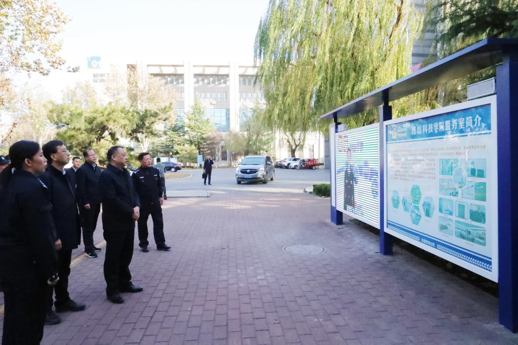 12月7日下午,寿光市副市长、公安局局长姬洪刚带领寿光市公安局各警种来我校调研警务室建设工作,学校校长、党委副书记魏华中陪同。