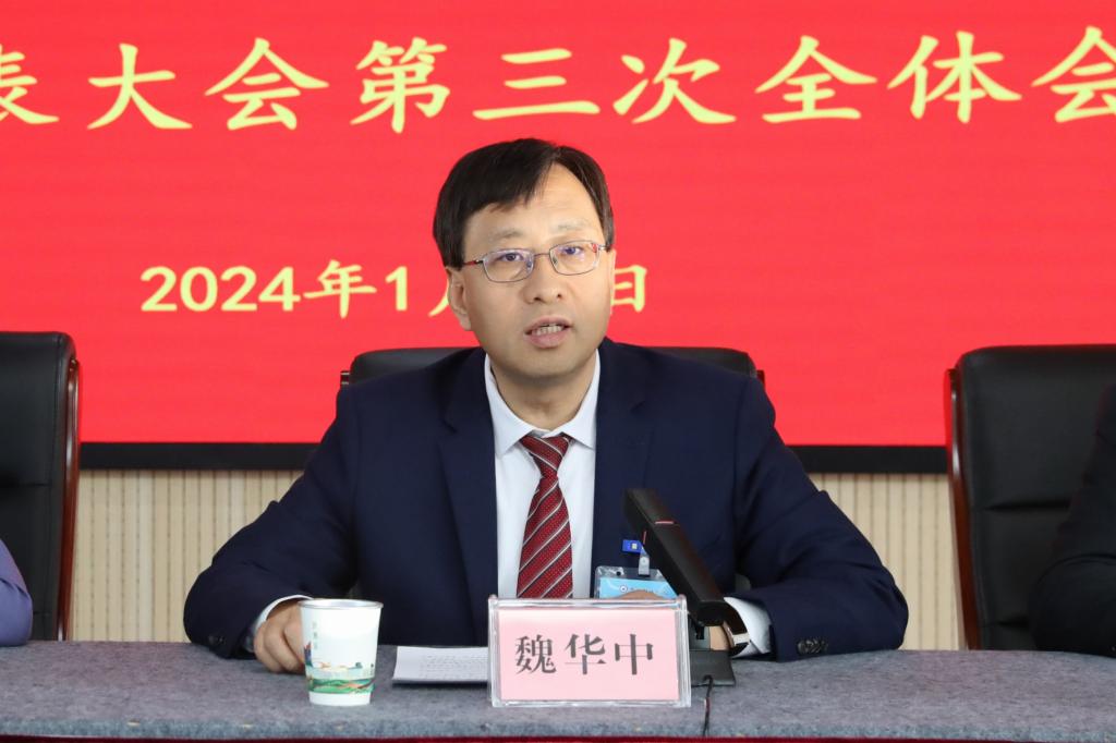 魏华中校长代表学校作《真抓实干 事争一流 全力推进学校高质量跨越式发展》工作报告。报告全面总结了2023年主要工作,对2024年工作进行了安排部署。