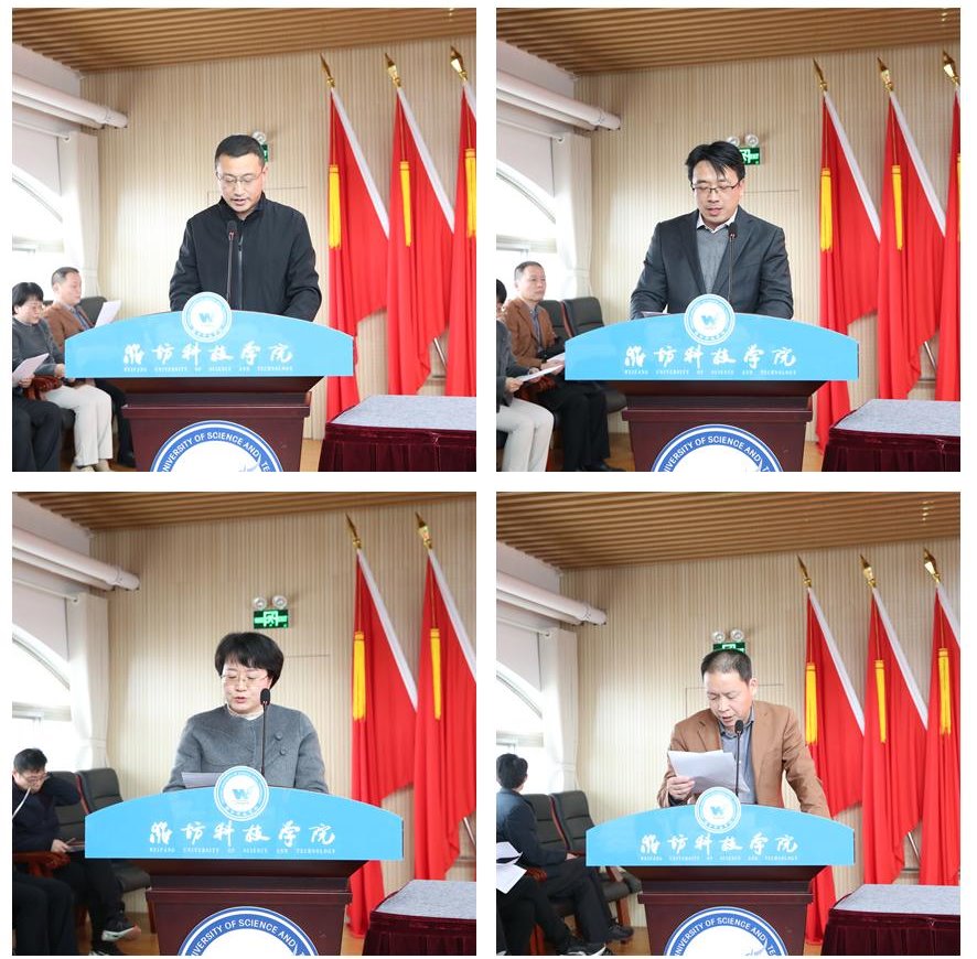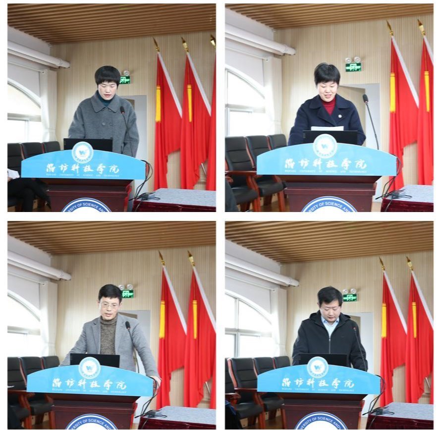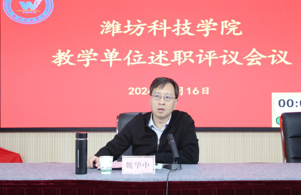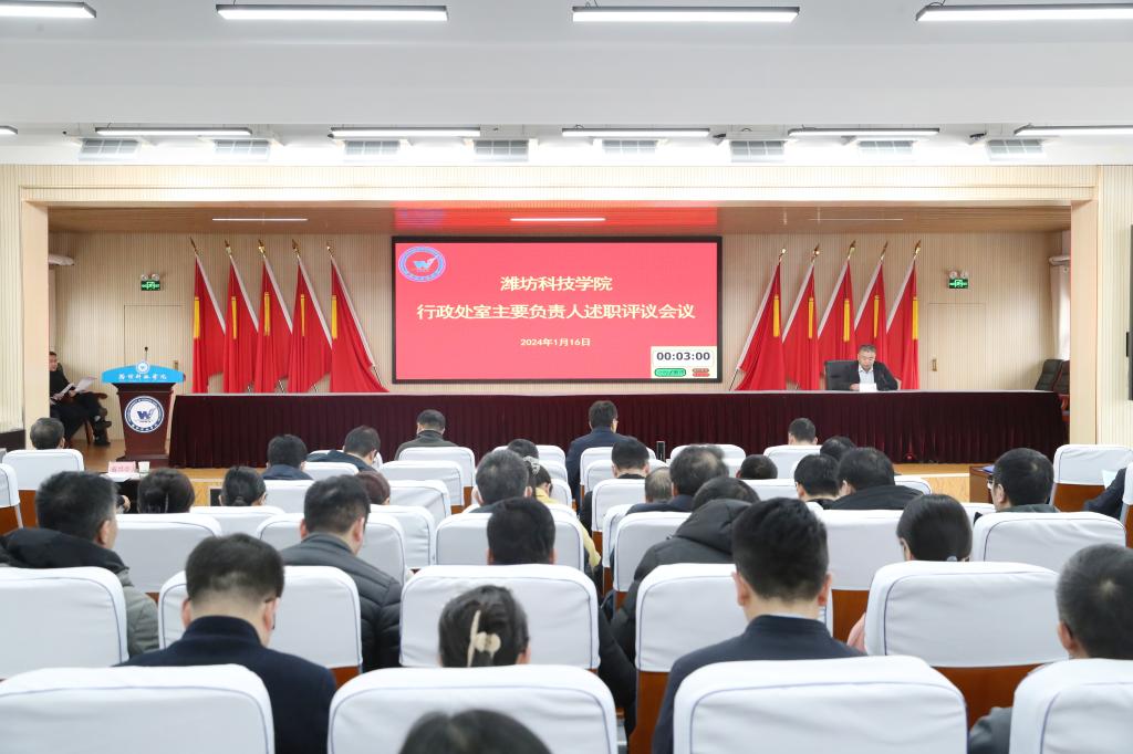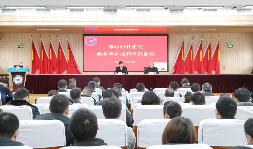 1月16日,我校召开教学单位、行政处室述职评议会议。潍坊科技学院校长、党委副书记魏华中,学校校级领导班子全体成员,全体中层干部、教职工代表进行评议并打分。党委委员、纪委书记刘奎然,副校长刘相法分别主持述职评议会议。