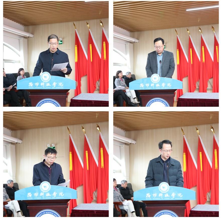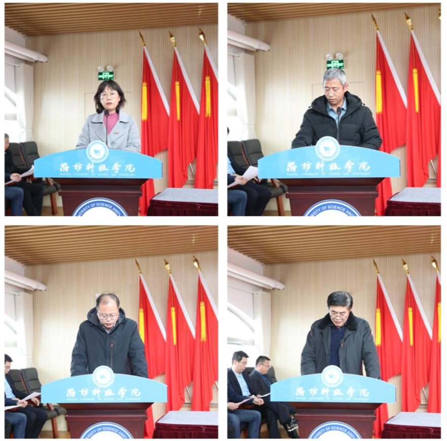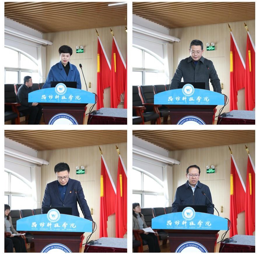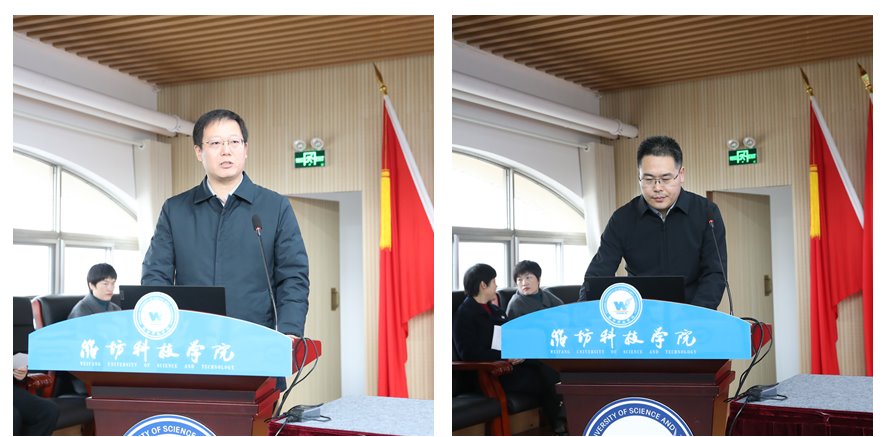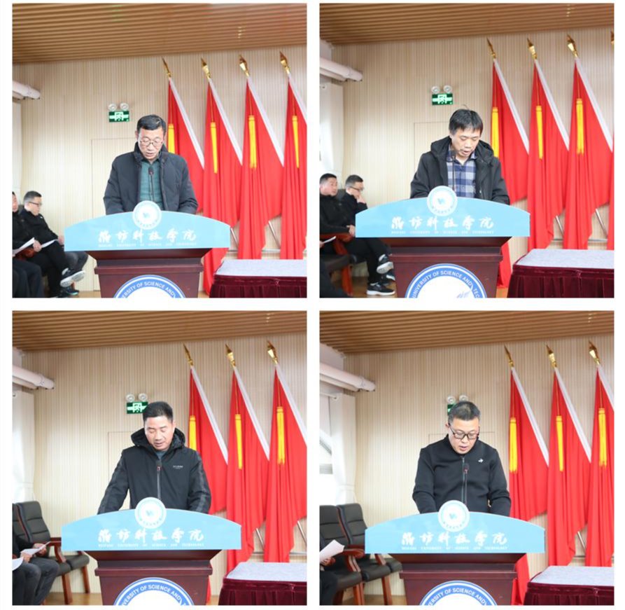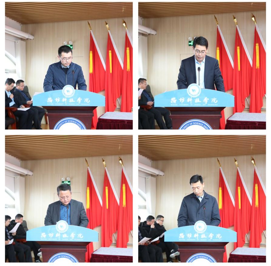 1月16日,我校召开教学单位、行政处室述职评议会议。潍坊科技学院校长、党委副书记魏华中,学校校级领导班子全体成员,全体中层干部、教职工代表进行评议并打分。党委委员、纪委书记刘奎然,副校长刘相法分别主持述职评议会议。