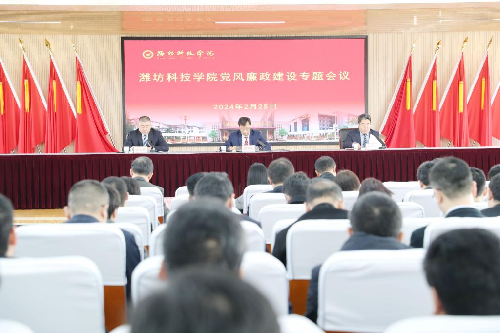 2月25日上午,潍坊科技学院2024年党风廉政建设专题会议在办公楼六楼报告厅召开。学校校长、党委副书记魏华中,校级领导班子成员,全体中层及以上干部参加。