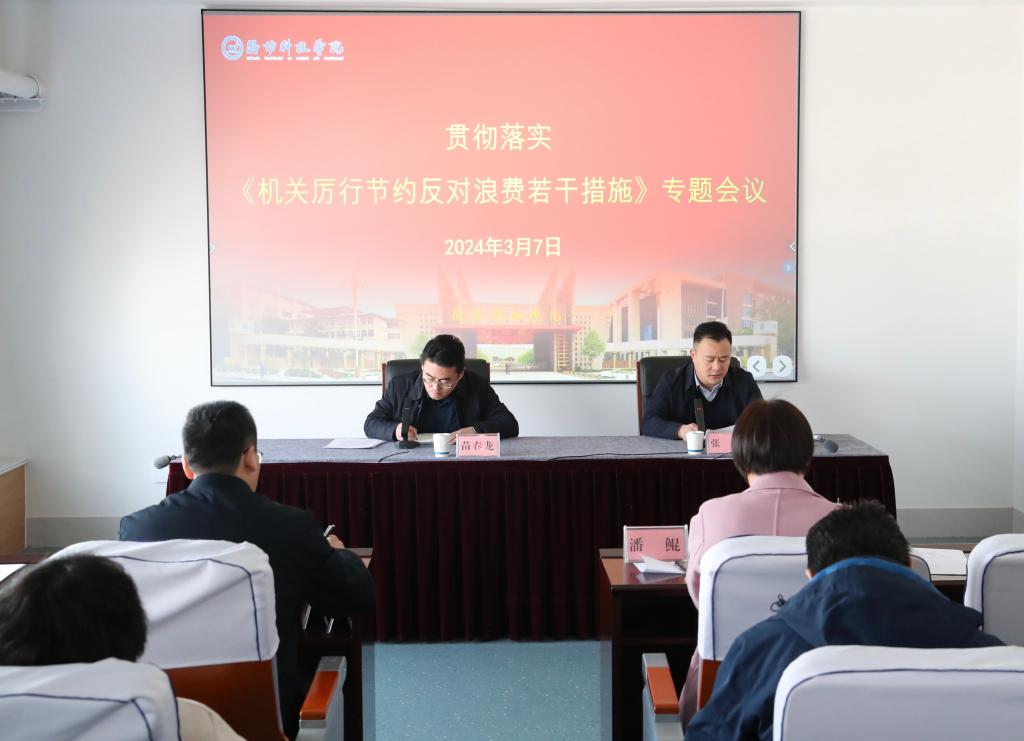 会议强调,学校各部门要认真学习《机关厉行节约反对浪费若干措施》,在师生中从实开展厉行节约、反对浪费宣传教育,引导广大师生树牢节约理念,落实节约措施,推行绿色办公,倡导俭朴生活,切实增强厉行勤俭节约的行动自觉,大力推动绿色、低碳、节约型校园建设,为学校高质量发展贡献新的更大力量。