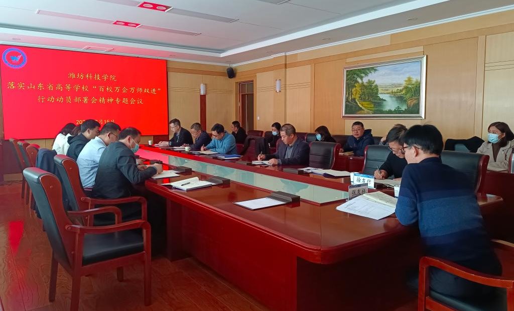 3月15日下午,山东省教育厅等4部门以视频会议形式联合召开山东省高等学校“百校万企万师双进”行动动员部署会。省教育厅有关负责同志,省教育厅、省科技厅、省工业和信息化厅、省国资委有关处室负责同志,驻济高校分管负责同志、牵头部门负责同志,部分企业代表在主会场参会,我校在三楼会议室设分会场。我校党委委员、副校长张友祥,教务处、学工处、人事处、科研处、财务处、社会服务处相关负责同志及各二级学院党支部书记在分会场参会。