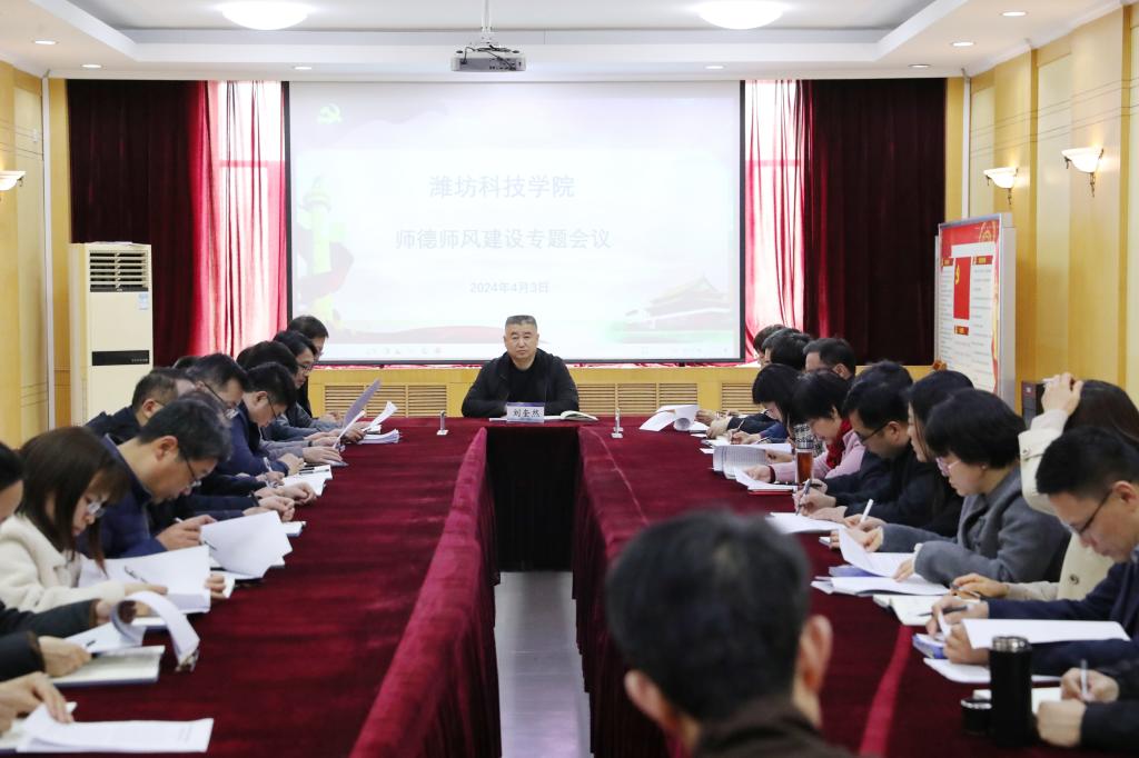 为进一步贯彻落实习近平总书记关于师德师风建设的重要指示精神,把师德师风建设作为教师队伍建设的首要任务,健全我校师德师风建设长效机制,用制度的力量确保师德师风建设常态化、机制化,4月3日下午,我校在办公楼三楼东会议室召开师德师风建设专题会议。学校党委委员、纪委书记刘奎然参加会议并讲话,有关部门主要负责同志参加会议。党建办、教务处、团委、马克思主义学院、智能制造学院、护理学院等部门根据自身工作开展情况进行了交流发言。