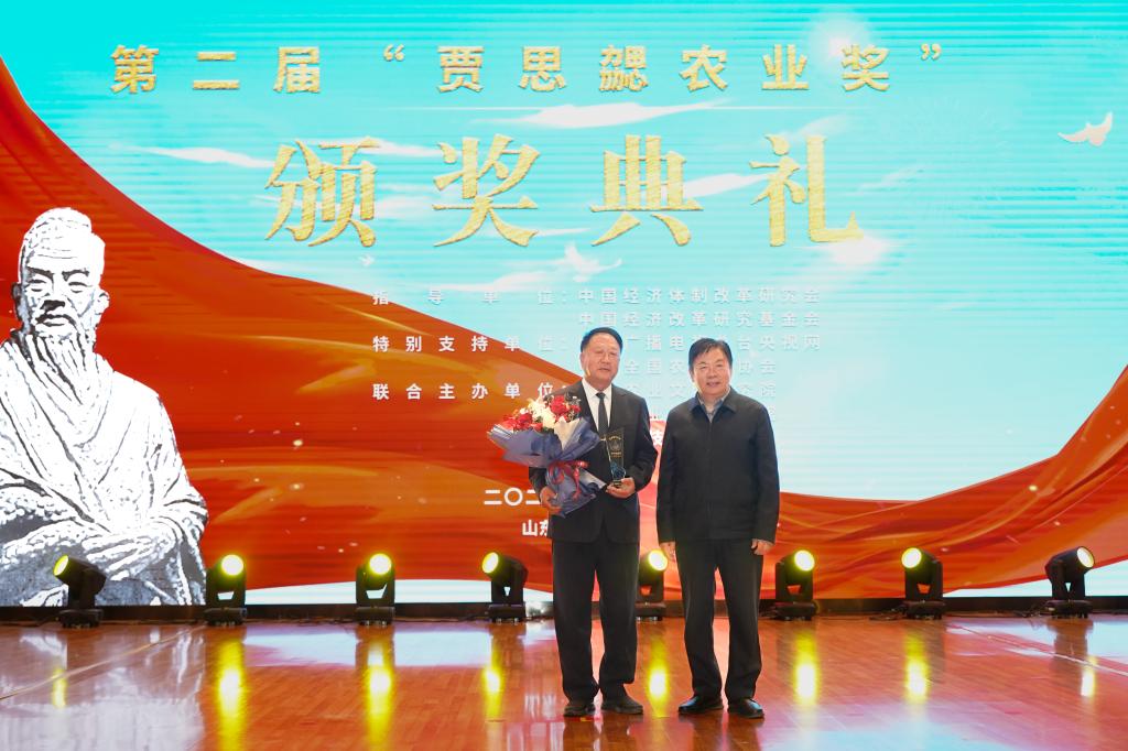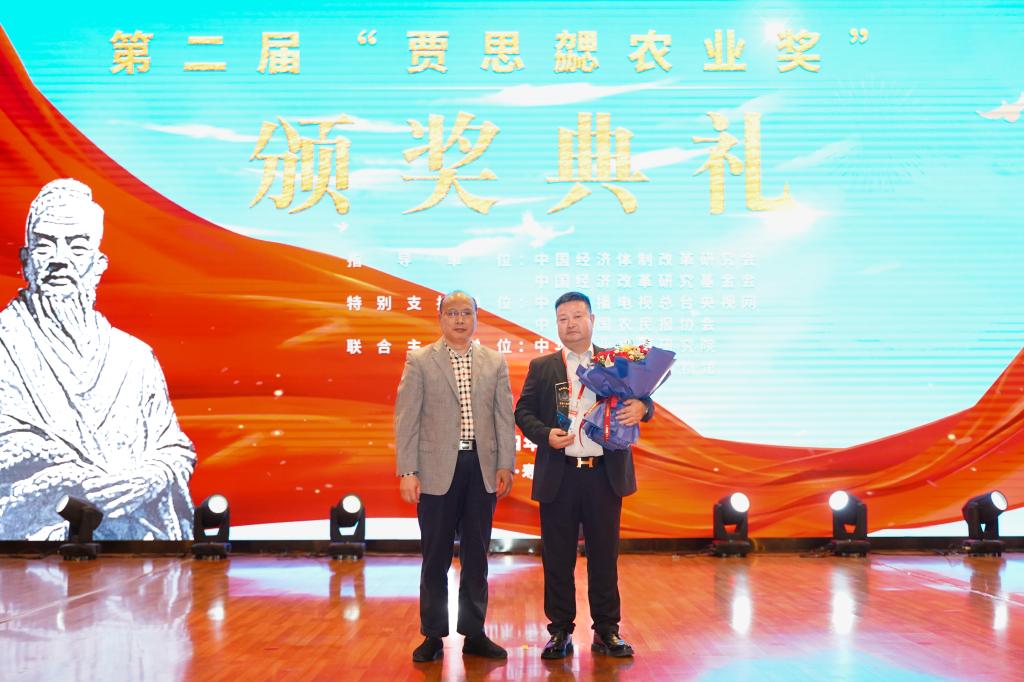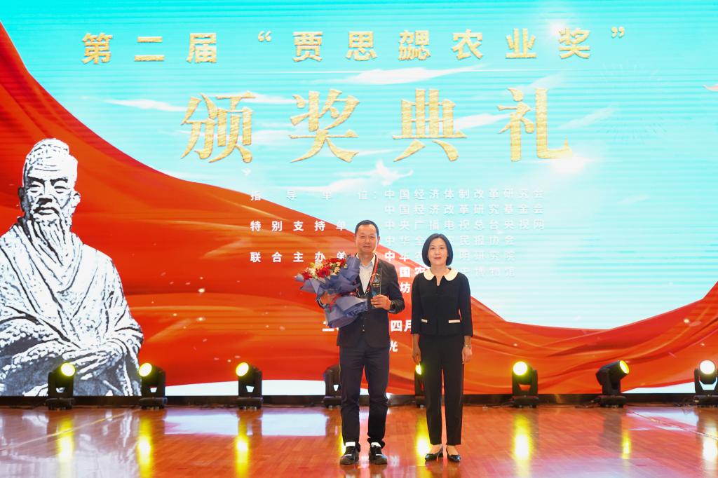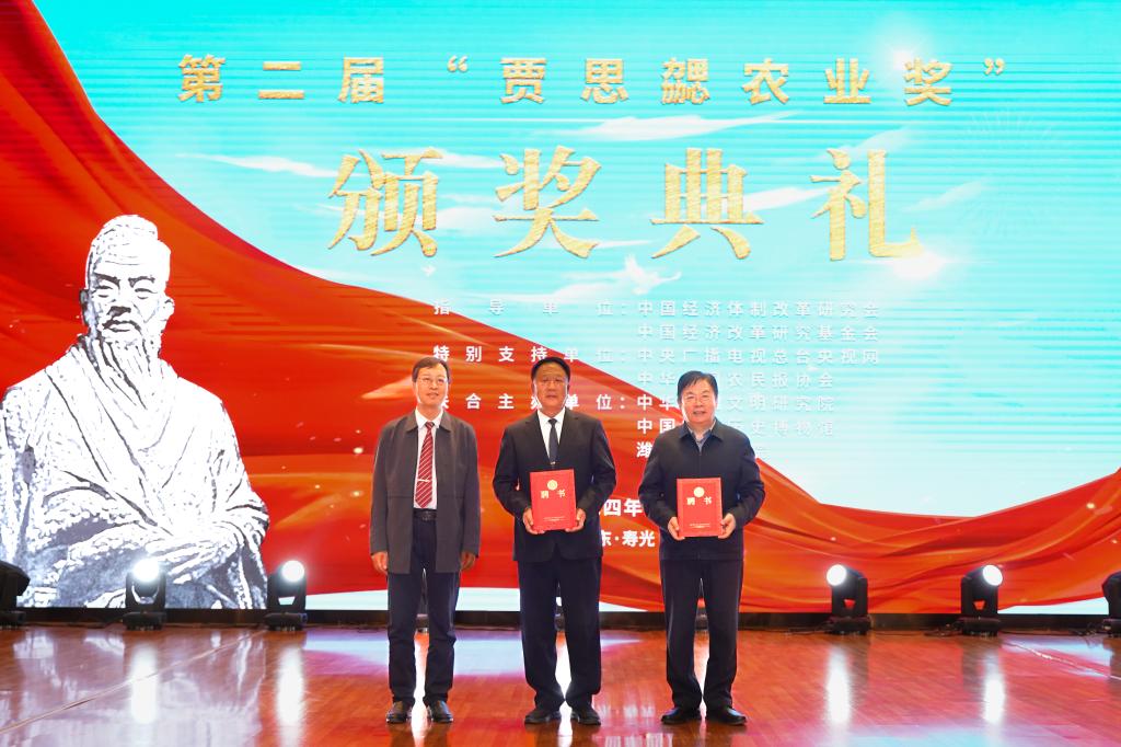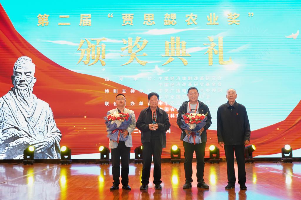 建成江南最大规模智能化蘑菇栽培基地的全国劳动模范、上海联中食用菌合作社理事长陈林根,中国农业500强企业负责人、山西省畜牧业协会常务副会长胡凯,深耕“东方宝树”元宝枫全产业链、携带尖端康养产品走向世界的重庆新生代女企业家、九尾猫集团创始人易晶晶,连续担任三届江苏省葡萄协会会长、拥有2000多个葡萄品系的“民间最牛葡萄育种专家”徐卫东,享受国务院政府特殊津贴、荣获国家科技进步奖和中华农业科技奖的四川农业大学水稻研究所负责人马均,改变水产传统经营模式、成功带动全国5万多名从业者发家致富的广东企业家张伟获得第二届“贾思勰农业奖”先锋人物奖;国家级农业产业强镇、甜瓜种植辐射海南岛28万亩的“中国甜瓜第一镇”山东省寿光市稻田镇,植树40年、让内蒙古7万亩沙漠披上绿装的“诺贝尔和平奖”提名奖获得者、“治沙女王”殷玉珍,种粮4000多万斤、受到党和国家领导人接见的“粮食大王”、湖北农民刘文豹父子获得第二届“贾思勰农业奖”杰出贡献奖;奋斗半个多世纪、七次开创和刷新中国夏玉米高产纪录、荣获国家科技进步奖一等奖、为保障中国粮食安全做出巨大贡献、与“杂交水稻之父”袁隆平齐名、被誉为“中国紧凑型杂交玉米之父”的李登海获得第二届“贾思勰农业奖”终身成就奖。