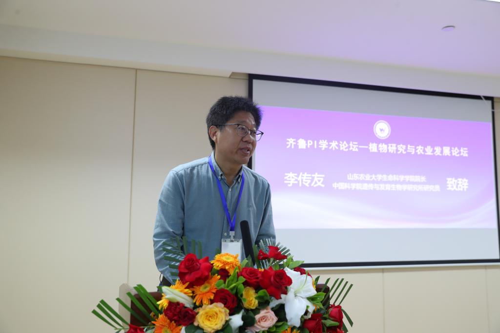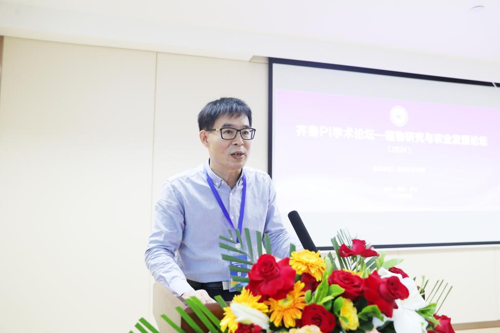 李传友研究员在致辞中,首先对潍坊科技学院举办本次会议表示感谢,同时祝贺山东省农业总产值突破1.5万亿元,成为全国农业总产值最高的省份。同时,表示山东省在水果、蔬菜和粮食产量方面均名列前茅,受到习近平总书记肯定的“潍坊模式”“寿光模式”,为植物科学领域的学者提供了广阔的研究平台,及丰富的实践基地和课题资源。以小番茄为例,寿光已经发展成为全球小番茄品种的竞技场,吸引了众多跨国公司和先进的番茄研究中心前来拜访。希望各位学者能加强学术交流,共同探讨如何更好地服务家乡农业,为山东农业发展和家乡父老乡亲贡献力量。
