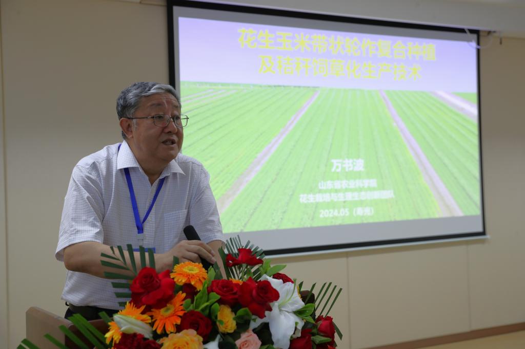 国际欧亚科学院院士、省委决策咨询委员会特聘专家、山东省农业科学院二级研究员、博士生导师、国家花生工程技术研究中心主任万书波作《玉米花生带状轮作复合种植及秸秆饲草化生产技术》报告;