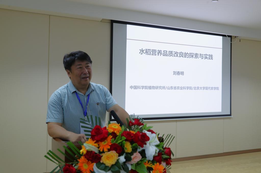 中国作物学会副理事长、中国科学院植物研究所研究员刘春明作《水稻营养品质改良的探索与实践》报告;