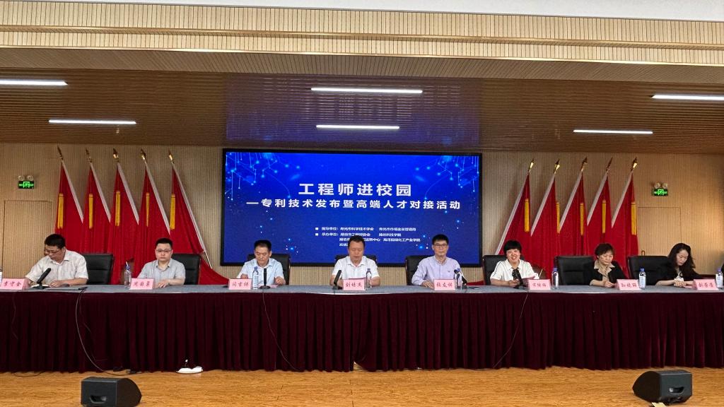 5月18日,由寿光市科学技术协会、寿光市市场监督管理局指导,我校联合潍坊市工程师协会、潍坊市知识产权运营中心承办的工程师进校园—专利技术发布暨高端人才对接活动在学校办公楼六楼会议室举行。寿光市科协党组书记、主席刘培杰,潍坊市工程师协会会长闫吉祥,潍坊市工程师协会秘书长周国勇,我校党委委员、副校长张友祥,科研处处长牛志宁,社会服务处副处长李守金,化工与环境学院院长宋继梅,副院长刘芳芳,博士技术服务团队成员,各企业代表以及学生代表参加活动,宋继梅主持。
