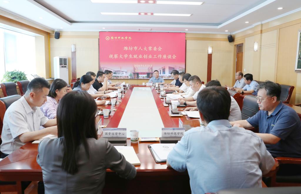 5月23日,潍坊市人大常委会委员、社会建设委副主任委员肖明胜带领视察组,到我校视察大学生就业创业工作。