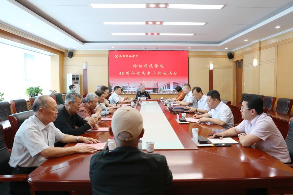为庆祝建校40周年,回顾学校发展历程,通报建设成果,共同展望美好未来。5月30日,潍坊科技学院在办公楼三楼第一会议室召开老干部座谈会。学校校长、党委副书记魏华中出席会议并讲话,党委委员、副校长杨专志主持会议,部分原校领导、离退休干部代表参加会议。