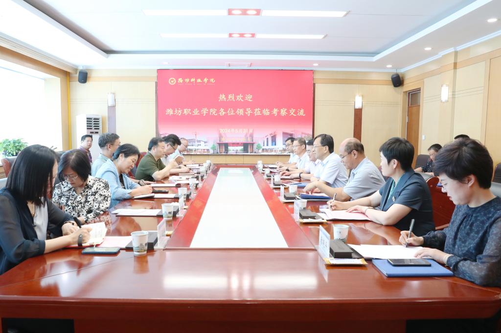 5月31日上午,潍坊职业学院党委副书记韩瑞东一行到我校考察交流。我校校长、党委副书记魏华中,副校长刘相法,党委副书记苗春龙,有关处室和二级学院主要负责人参加座谈交流。