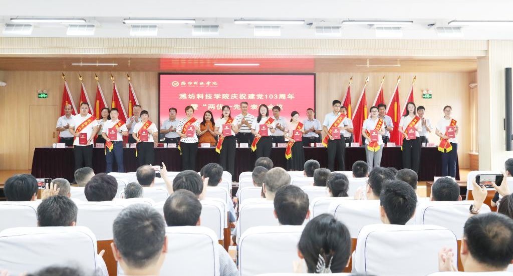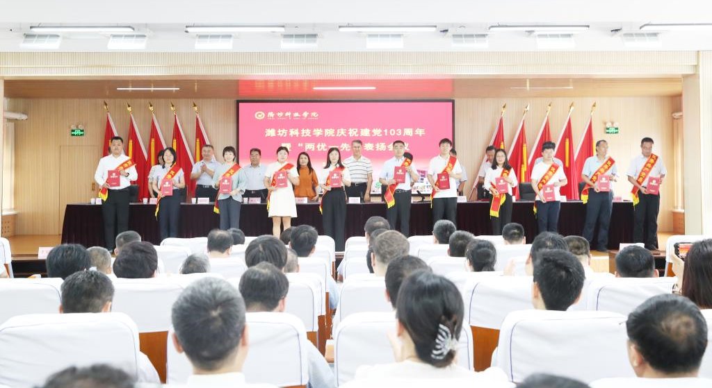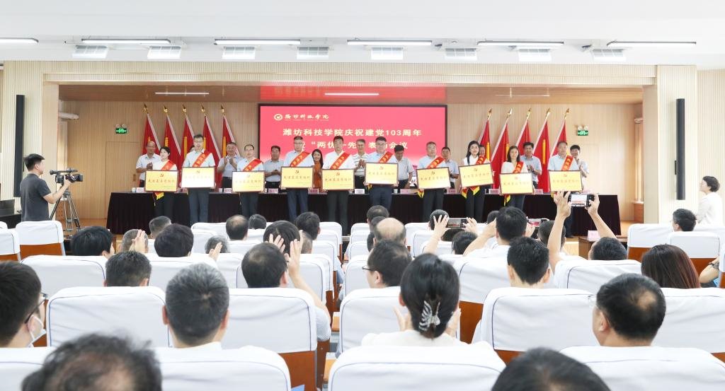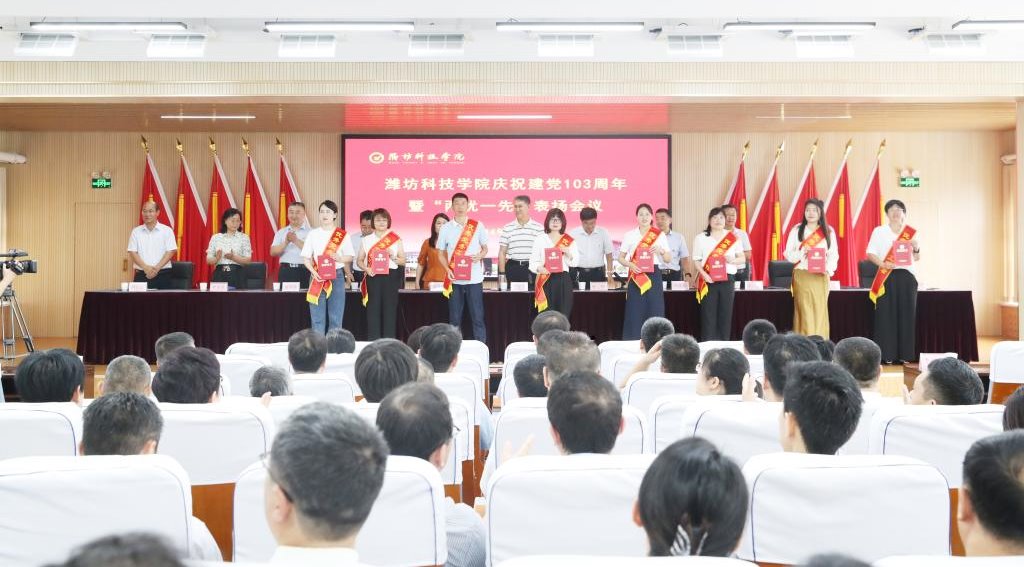 会议在雄壮的国歌声中拉开帷幕。学校党委委员、副校长杨专志宣读了《中共潍坊科技学院委员会关于表扬优秀共产党员、优秀党务工作者和先进基层党组织的决定》。