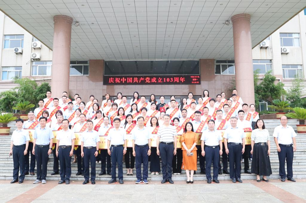 会后,校级领导干部与受到表扬的优秀共产党员、优秀党务工作者和先进基层党组织书记合影留念。