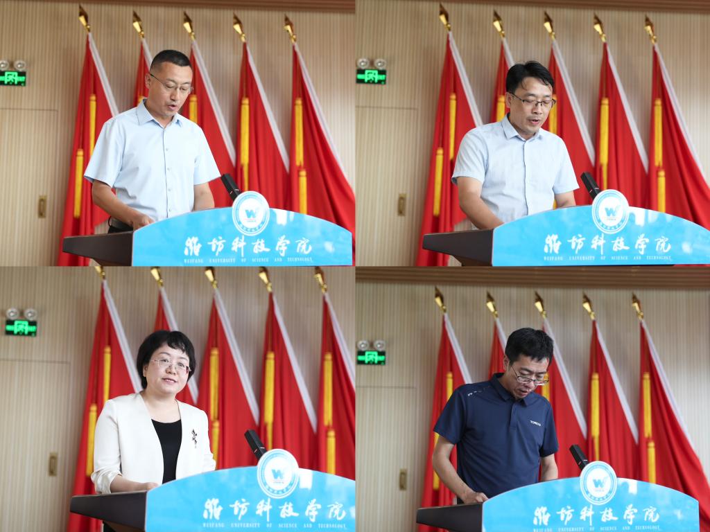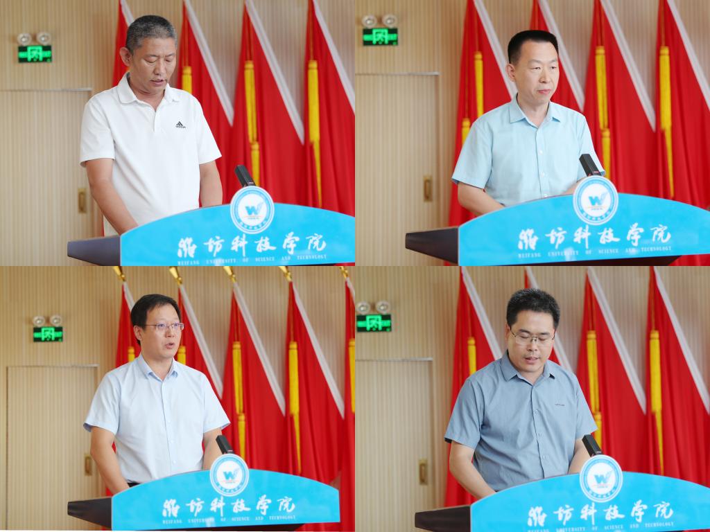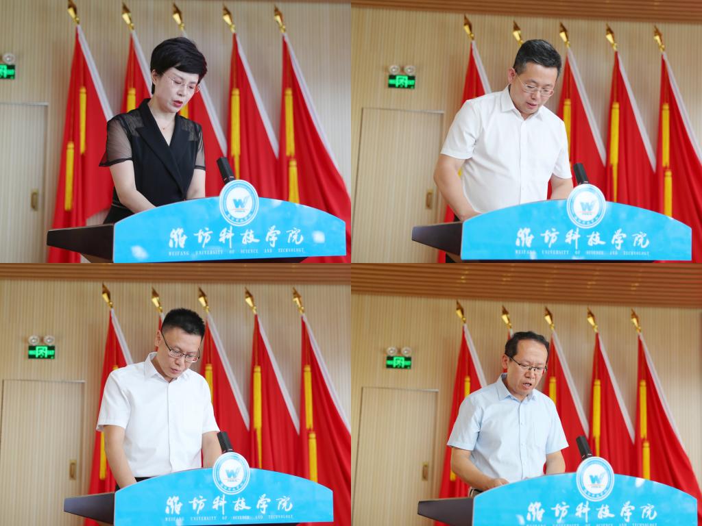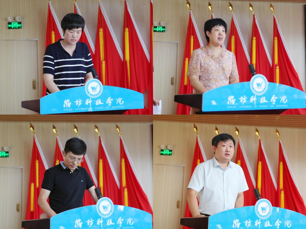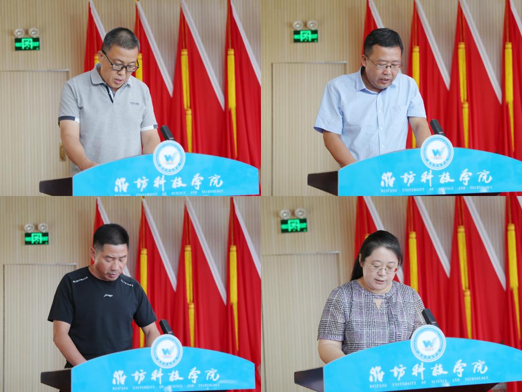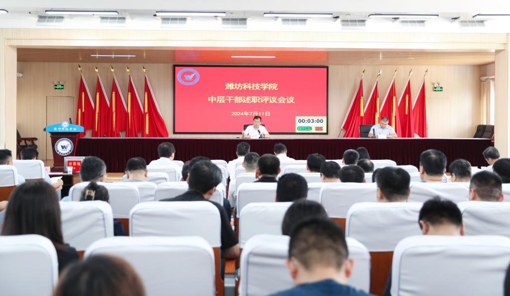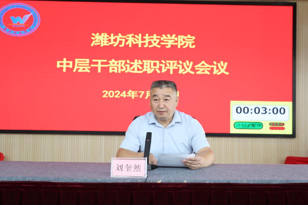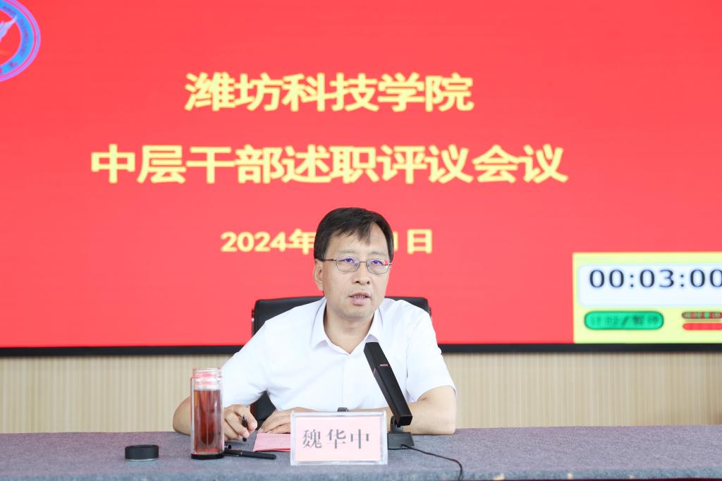 7月11日,我校在办公楼六楼报告厅召开中层干部述职评议会议。潍坊科技学院校长、党委副书记魏华中,学校校级领导班子全体成员,全体副职及以上中层干部,行政处室、创收单位职员和二级教学部门教师代表进行评议并打分。会议由党委委员、纪委书记刘奎然主持。