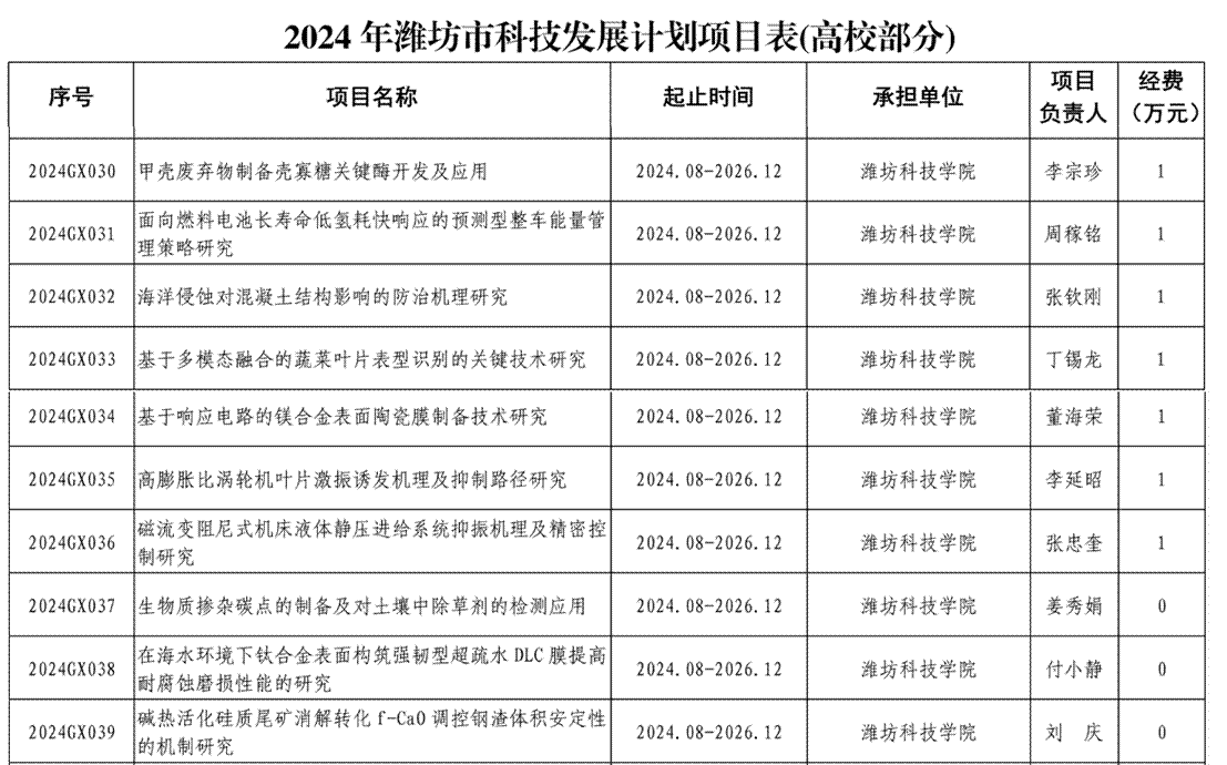 在近日公布的2024年潍坊市科技发展计划项目立项名单中,我校李宗珍老师的“甲壳废弃物制备壳寡糖关键酶开发及应用”等10项课题获准立项,其中7项课题获得资助。