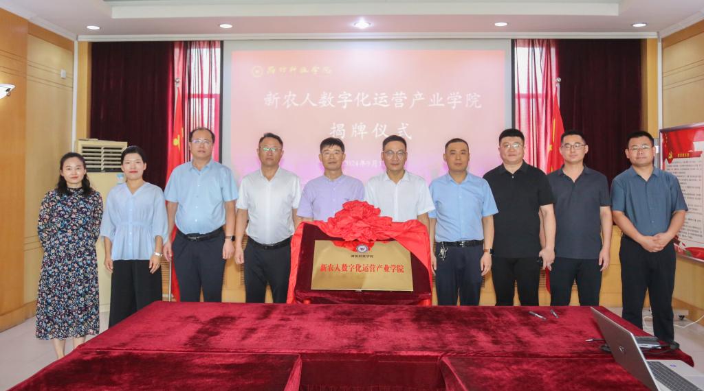 王海涛会长与张友祥副校长为新农人数字化运营产业学院揭牌