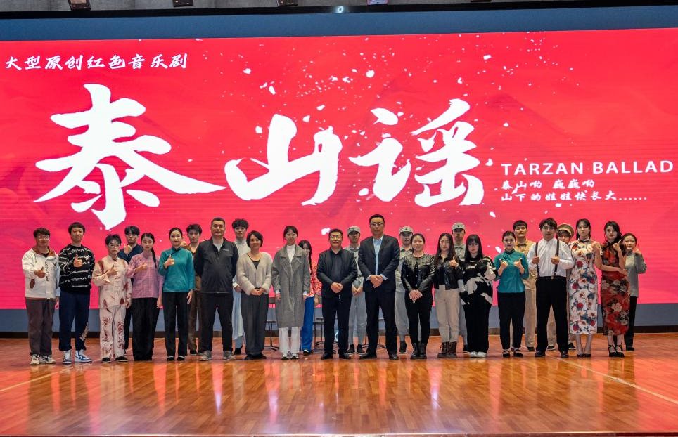 据了解,《泰山谣》是由泰山科技学院师生共同创作的红色音乐剧,通过艺术的形式展现了抗战时期泰安地区革命英烈不怕牺牲、舍小家为大家、勇于奉献的爱国主义精神。言之不尽、歌以咏之,咏之不尽,舞之蹈之。该剧共分为“攀登”“加入革命”“真假鲁宝琪”“江衍红就义”“日出”等五幕,聚焦弘扬革命文化,传承红色基因,把山东地方党史和齐鲁革命文化融合起来,以40余首原创歌曲(包括说唱等)贯穿全剧,创新性的将传统戏曲元素与歌曲、街舞等现代艺术元素进行有机整合,实现“古今”对话,用青年喜欢的形式,讲述最纯正的本土革命故事,是一堂生动活泼的“行走的思政课”。