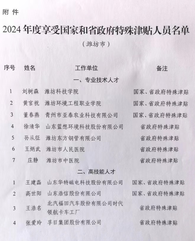 近日,山东省人力资源和社会保障厅公布了2024年度享受国家和省政府特殊津贴人员名单,我校教师刘树森入选。