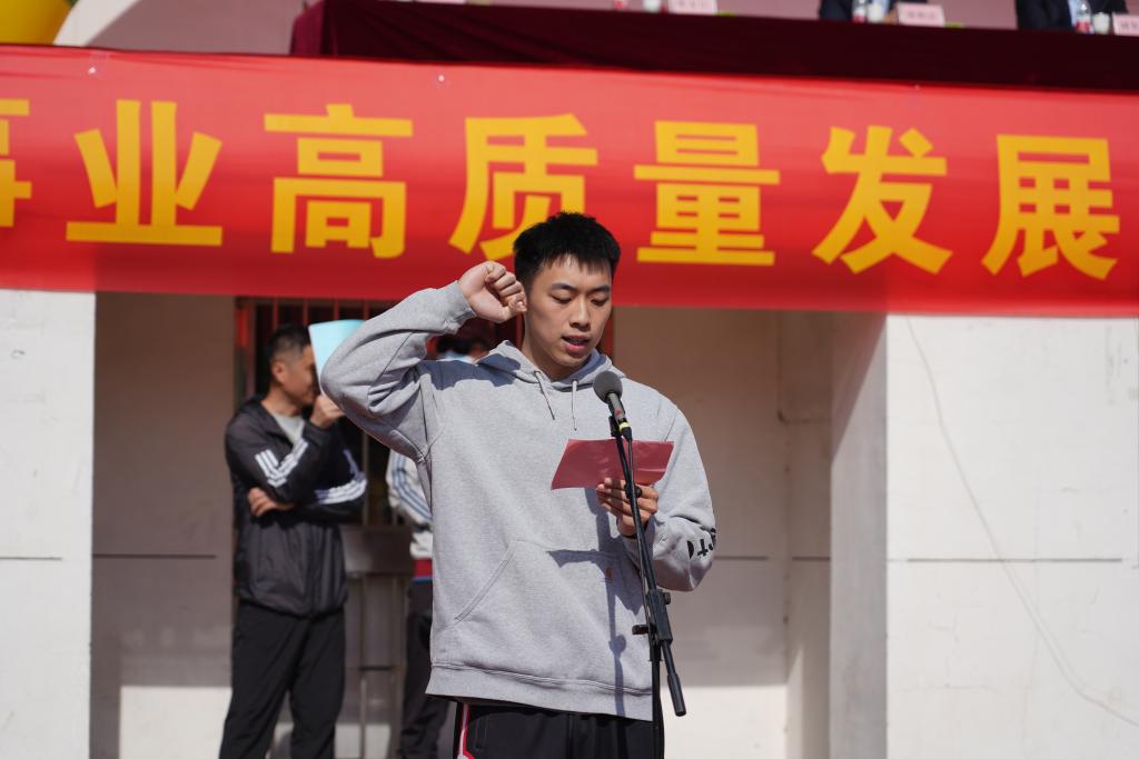 魏华中在致辞中代表学校向运动会的顺利开幕表示祝贺!向筹备组织运动会的师生表示衷心的感谢!向运动会裁判员、运动员致以美好的祝愿!他指出,作为落实立德树人根本任务的关键环节,学校体育教育不仅是提升学生综合素质的根基,更是培育时代新人的重要阵地。作为新时代的青年学子,肩负着实现中华民族伟大复兴的历史使命,而高尚品德、渊博学识、创新精神和实践能力的培养,都离不开强健体魄这一坚实根基。希望全体运动员以此次运动会为契机,大力弘扬顽强拼搏、团结协作的体育精神,将体育锻炼融入日常生活,让强健体魄成为终身财富。在运动中享受乐趣、增强体质、健全人格、锤炼意志,以昂扬向上的姿态,展现出新时代潍科人勇立潮头、锐意进取的卓越风采。他着重强调,运动会不仅是对学校体育教育成果的全面检验,更是全校师生精神风貌与综合素养的集中展现。体育精神,不仅在于对竞技成绩的卓越追求,更在于敬畏规则、尊重对手、团结协作。希望全体运动员坚持“安全第一、友谊第一”的原则,在赛场上挑战自我、突破极限,赛出成绩、赛出水平、赛出风格。