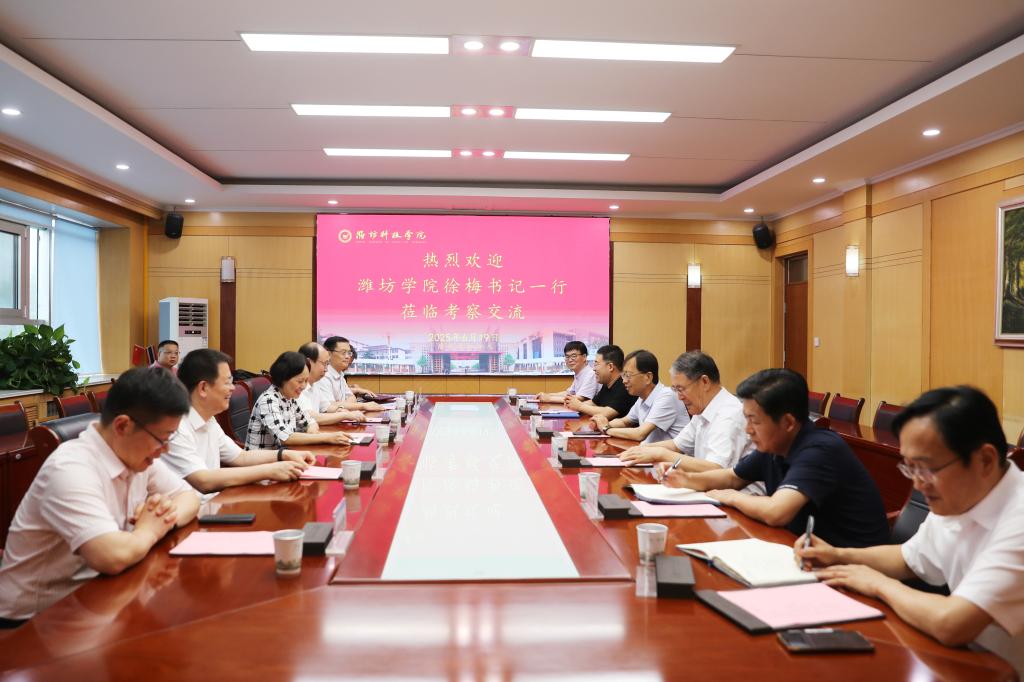 6月19日,潍坊学院党委书记徐梅,党委委员、副校长李英德、任立春,党委委员、组织部部长赵加强,党委(校长)办公室主任赵文亮,合作发展处处长夏润海一行6人到我校考察交流。我校校长、党委副书记魏华中,党委书记赵光强,党委副书记杨专志,党委委员、副校长李广伟、张友祥以及相关处室主要负责同志参加座谈。