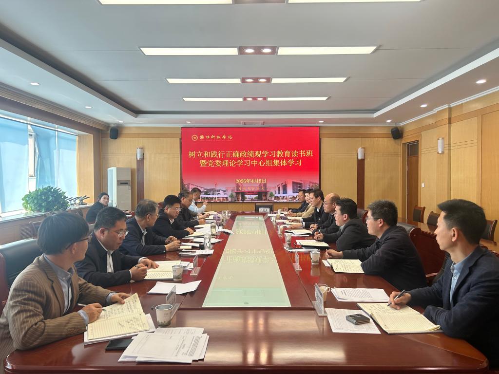 为深入学习贯彻习近平总书记关于树立和践行正确政绩观的重要论述,扎实推进学校高质量发展,4月8日,学校召开树立和践行正确政绩观学习教育读书班暨党委理论学习中心组专题学习。党委书记王洪禹主持学习,学校党政领导班子成员参加学习,党委委员、副校长张友祥,徐友信作交流发言。
