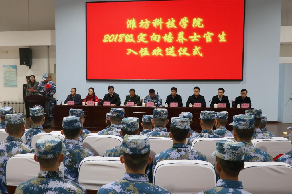 12月21日,士官学院举行2018级海军定向培养士官生入伍欢送仪式,海军某部首长,寿光人武部政工科科长董兴宗,潍坊科技学院副校长付生,教务处、学工处、团委、招办、士官学院等部门相关负责人出席会议,士官学院全体教师、全体海军学员参加欢送仪式。士官学院党支部书记田会主持欢送仪式。