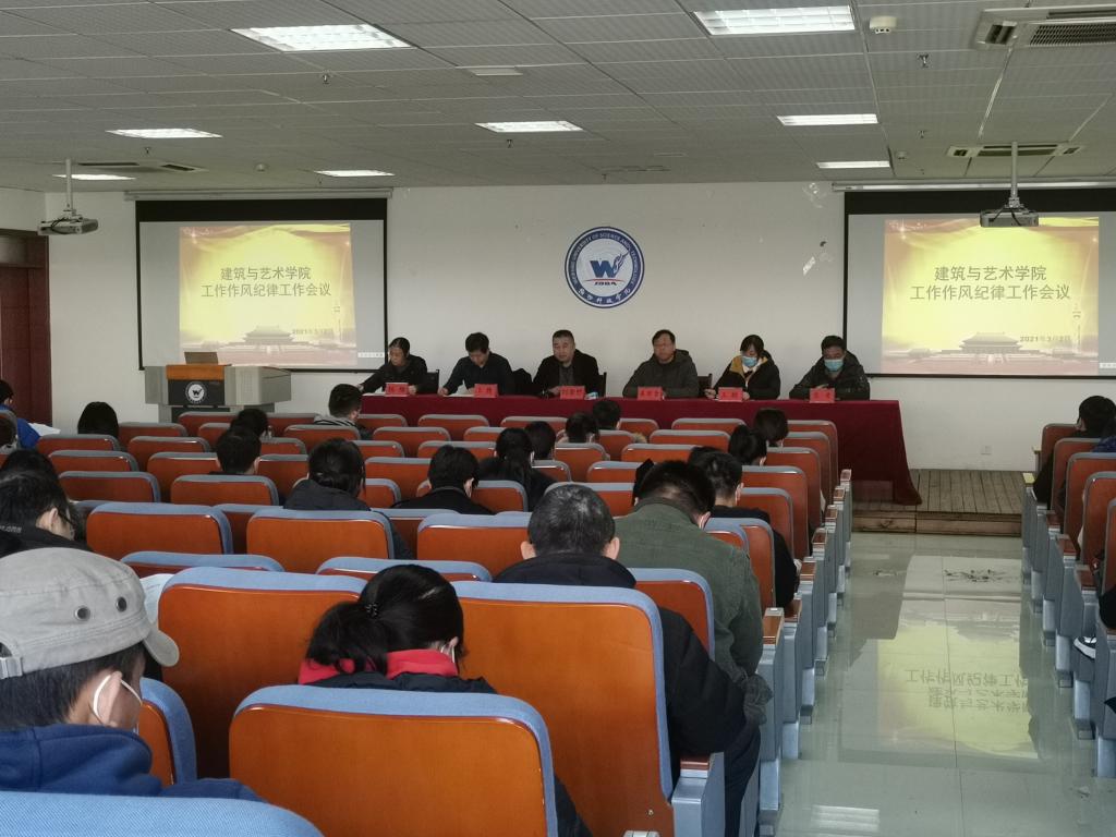 3月2日,新学期开学之际,建筑与艺术学院在文化创意大厦召开工作作风纪律工作会议,校党委委员、纪委书记刘奎然出席并讲话,建筑与艺术学院全体教师参加。建筑与艺术学院党支部书记姜亦金主持。