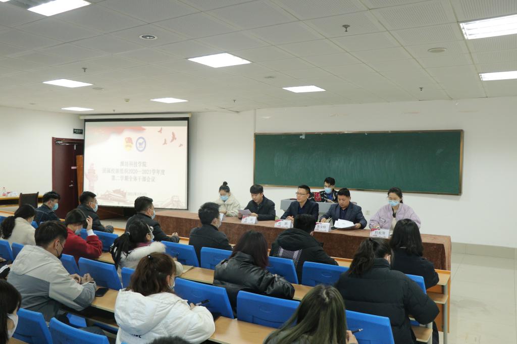 3月4日下午,我校团委召开2020-2021学年第二学期团属校级组织全体学生干部会议,会议总结了过去一学期我校共青团工作取得的成绩,并对新学期工作进行了安排部署。团委全体人员、各团属校级组织学生干部参加了此次会议。