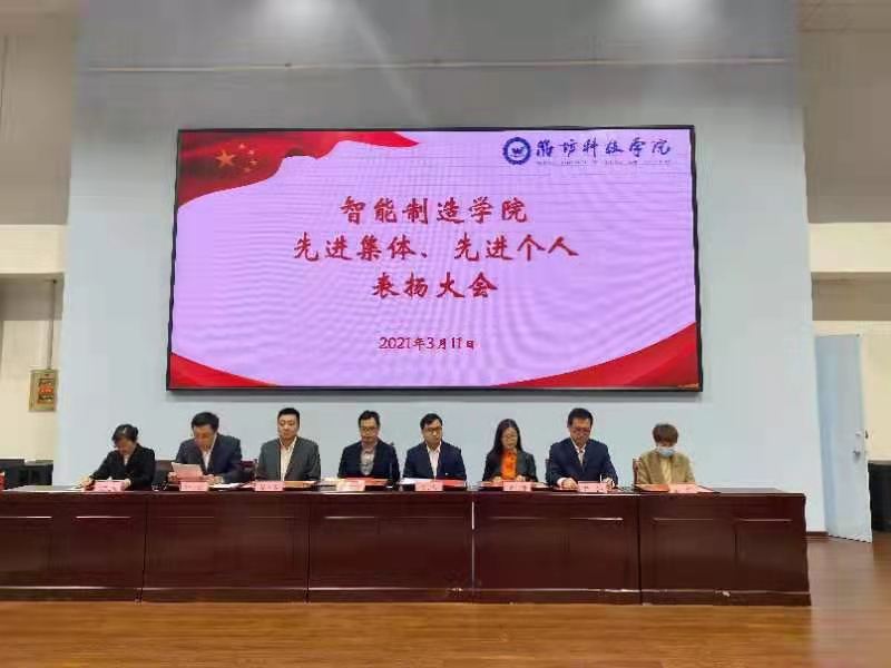 3月11日,智能制造学院2020年度先进集体和先进个人表扬大会在经管学院环形报告厅召开。智能制造学院院长王瑞春、党支部书记张庆荣参加会议。