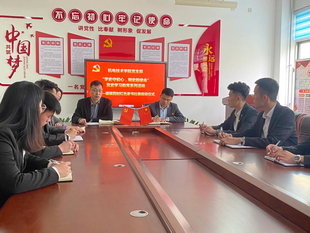 为引导大学生坚定理想信念,培养爱国情怀,弘扬民族精神,展现当代青年的责任与担当。3月31日下午,机电技术学院党支部举行“诵读百封红色家书”活动启动仪式。